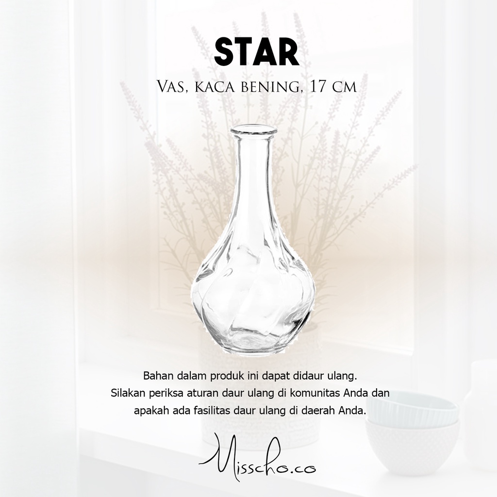 STAR Vas Bunga Kaca Bening Kecil Mini Aesthetic Lucu Unik untuk Meja Ruang Tamu Hias Dekorasi Minimalis tinggi 17cm