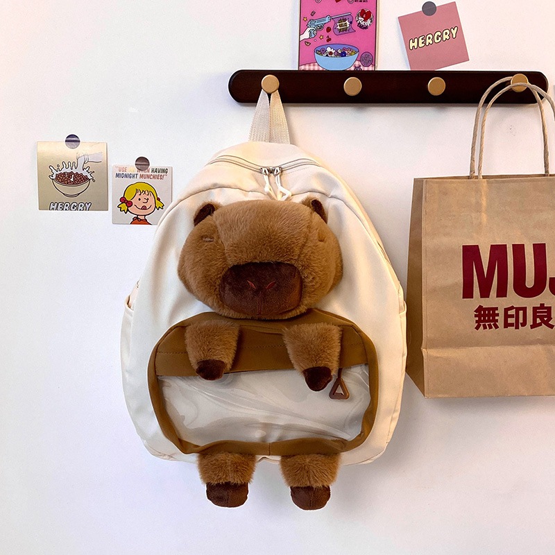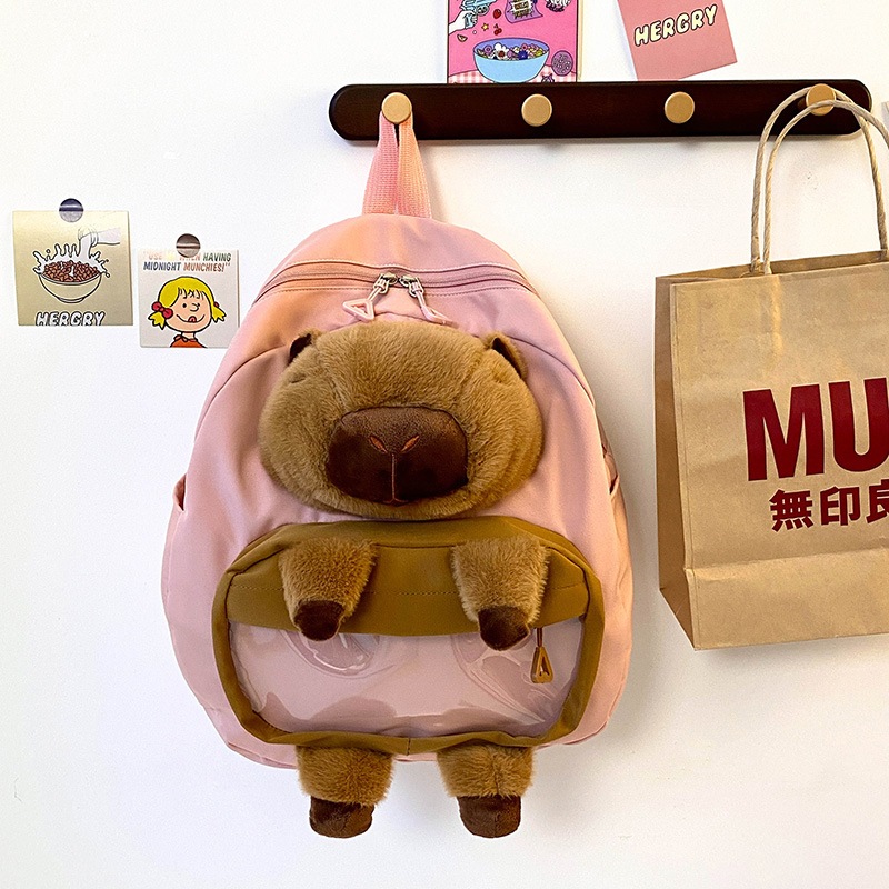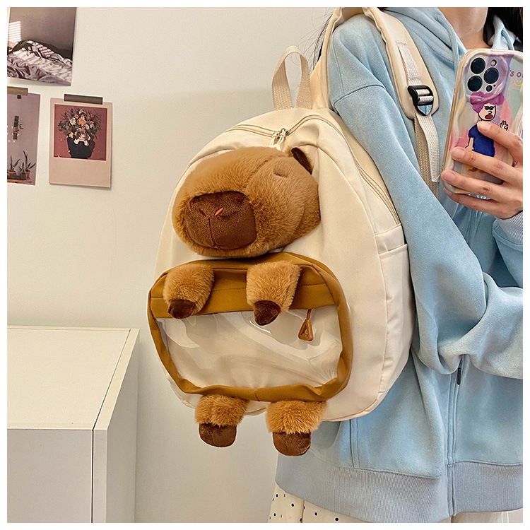 (COD) Tas Capybara Anak-anak Tas Ransel Boneka Kerah Bulu Karakter Tas Boneka Bagpack