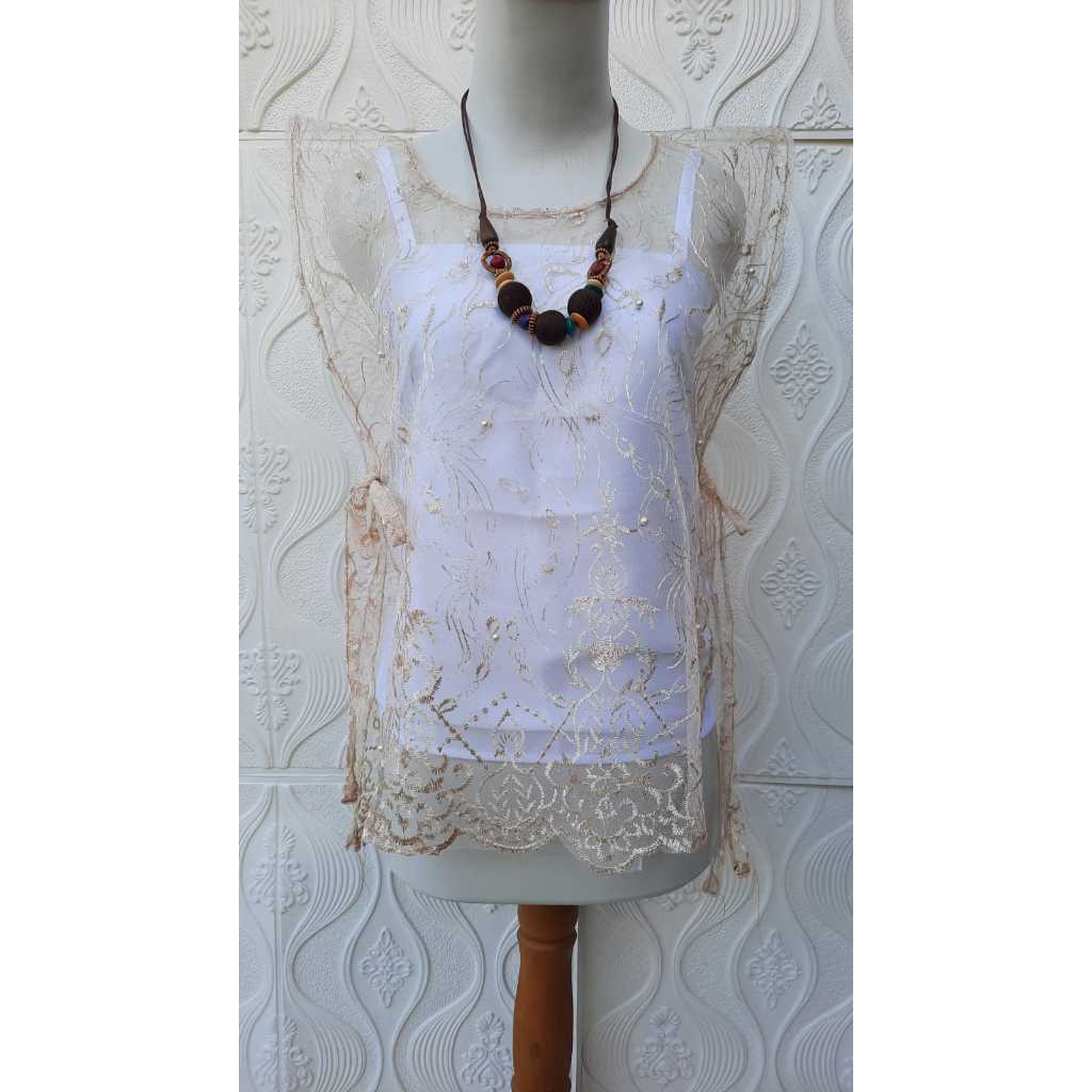 Terbaru Outer Brokat Rompi Tali Samping Vest Rompi Brukat Lace Tile Premium Vest Tile Bunga Mutiara Vest Style Korea C3Q2