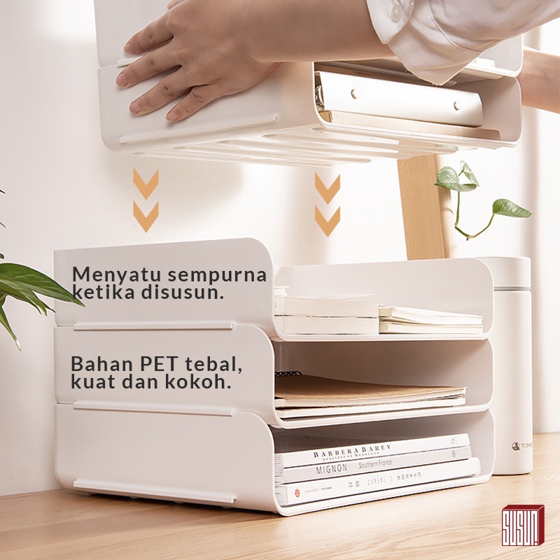 Susun Tray File Dokumen Susun / Rak Kertas Organizer Document Paper Meja Kantor Putih Transparant