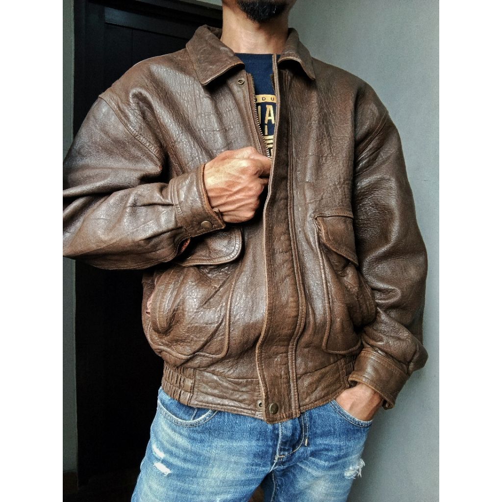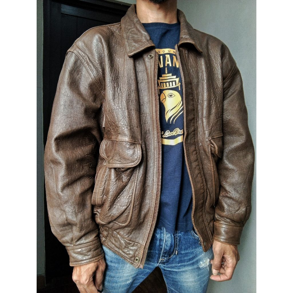 Vintage Pilot Leather Jacket - Jaket Kulit Pria Army Retro Second Preloved
