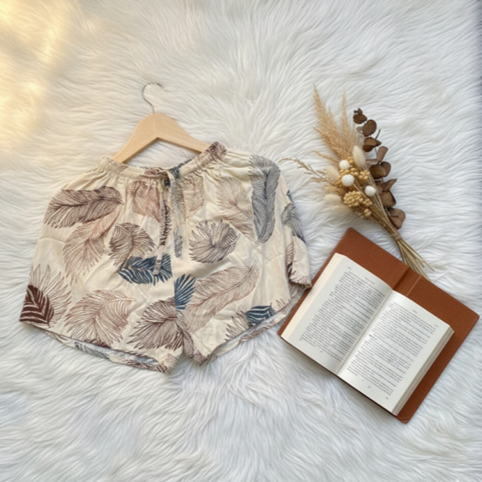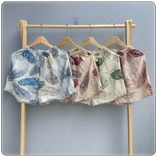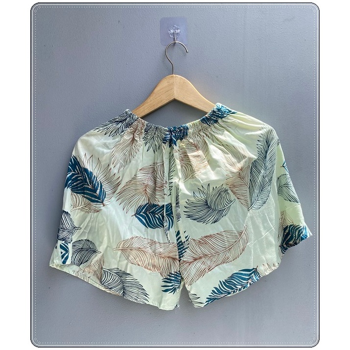 Best Seller Celana Pendek Wanita Bahan Rayon Bali Dingin Motif Daun Pulm Hotpants Santai Simple Allsize