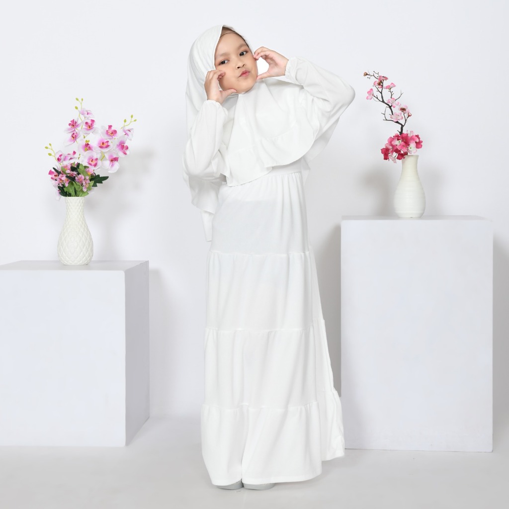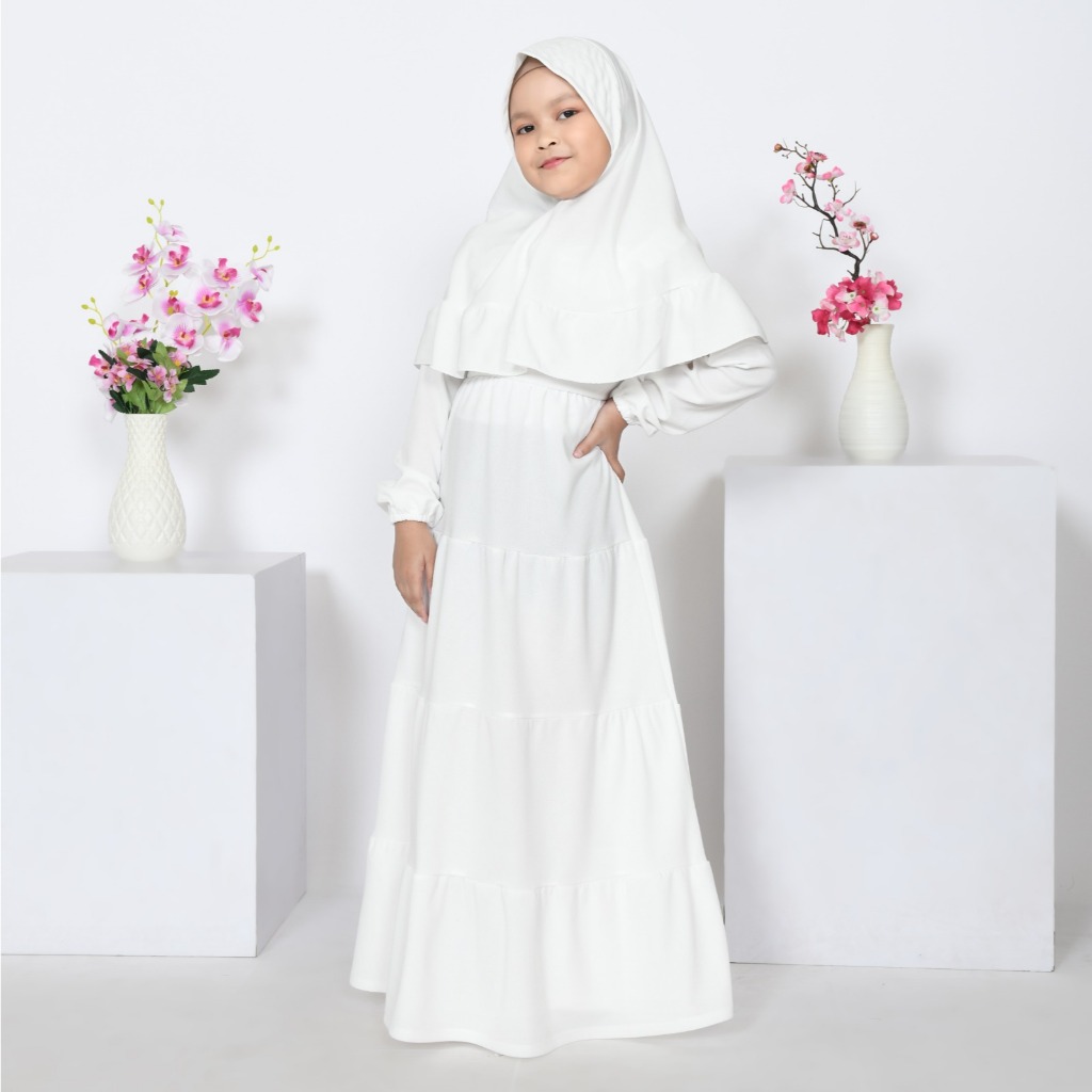 GAMIS + HIJAB ANAK ZAHRA PUTIH SMLXL BABYCLOTH35 UNTUK 3-14TAHUN GAMIS PUTIH MANASIK HAJI