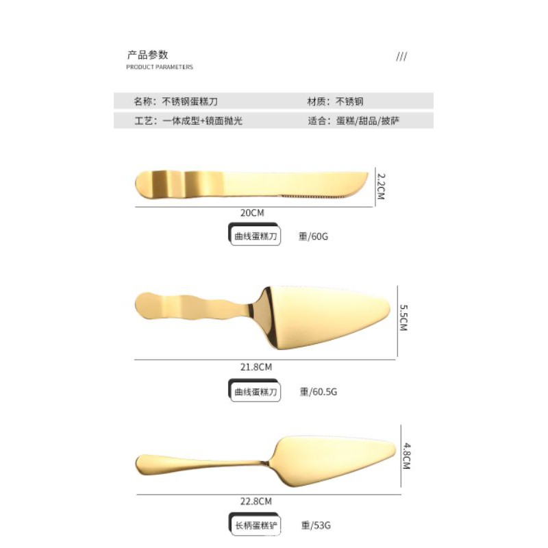 PISAU CAKE / PEMOTONG KUE / PISAU KUE GOLD / SENDOK CAKE GOLD