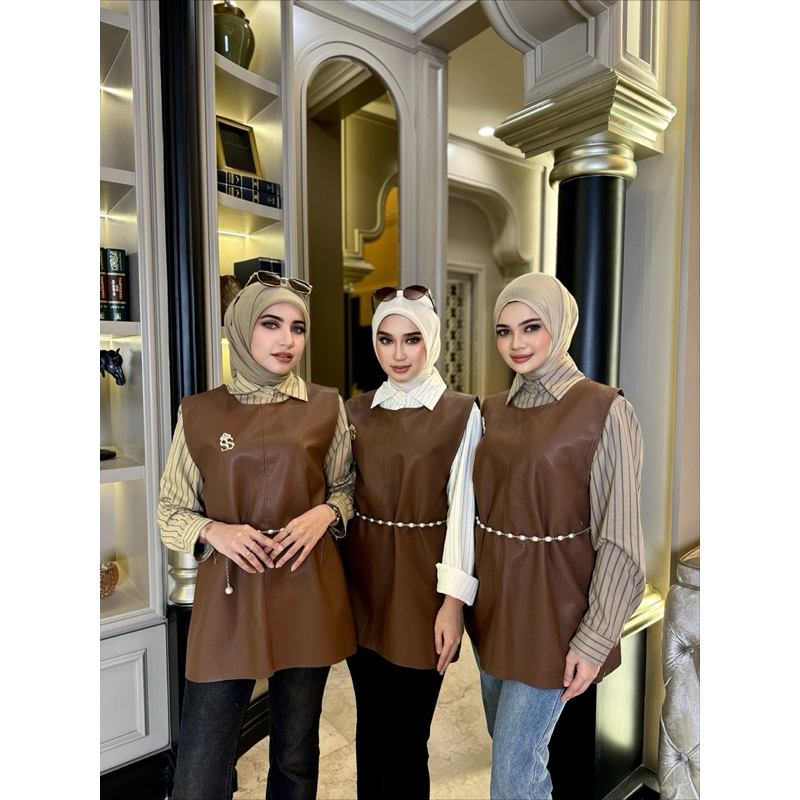 SHELLASAUKIA KEMEJA SALUR VEST KULIT FREE BELT