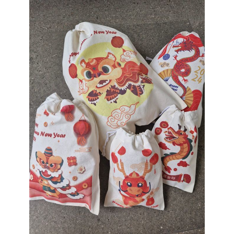 Tas Kantong Bingkisan Parcel Parsel Angpao Hamper Totebag Pouch Imlek CNY Chinese New Year Perlengkapan Packaging 2024