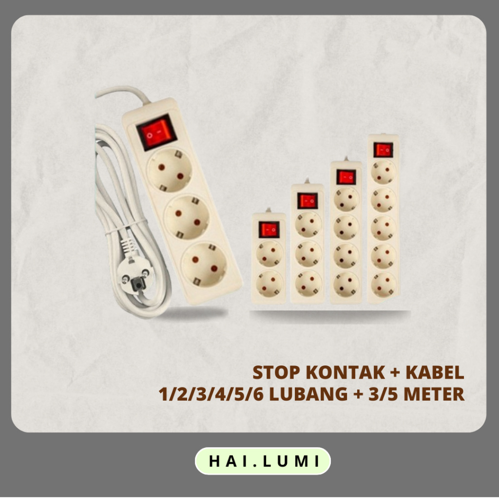 LUMI - STOP KONTAK 1/2/3/4/5/6 LUBANG + KABEL 3/5 METER HOSHINO