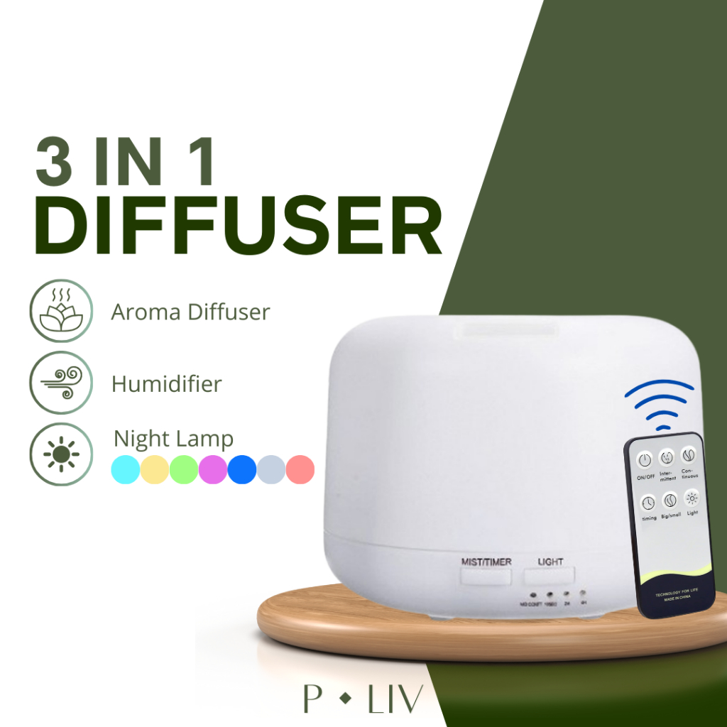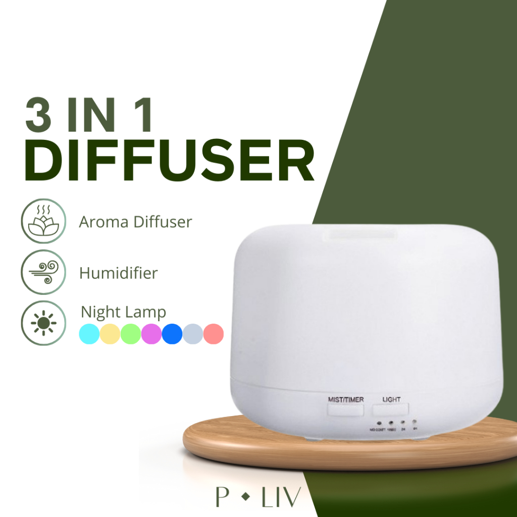 Pure Living Diffuser + Night Lamp 300mL Capacity - Essential Oil Diffuser