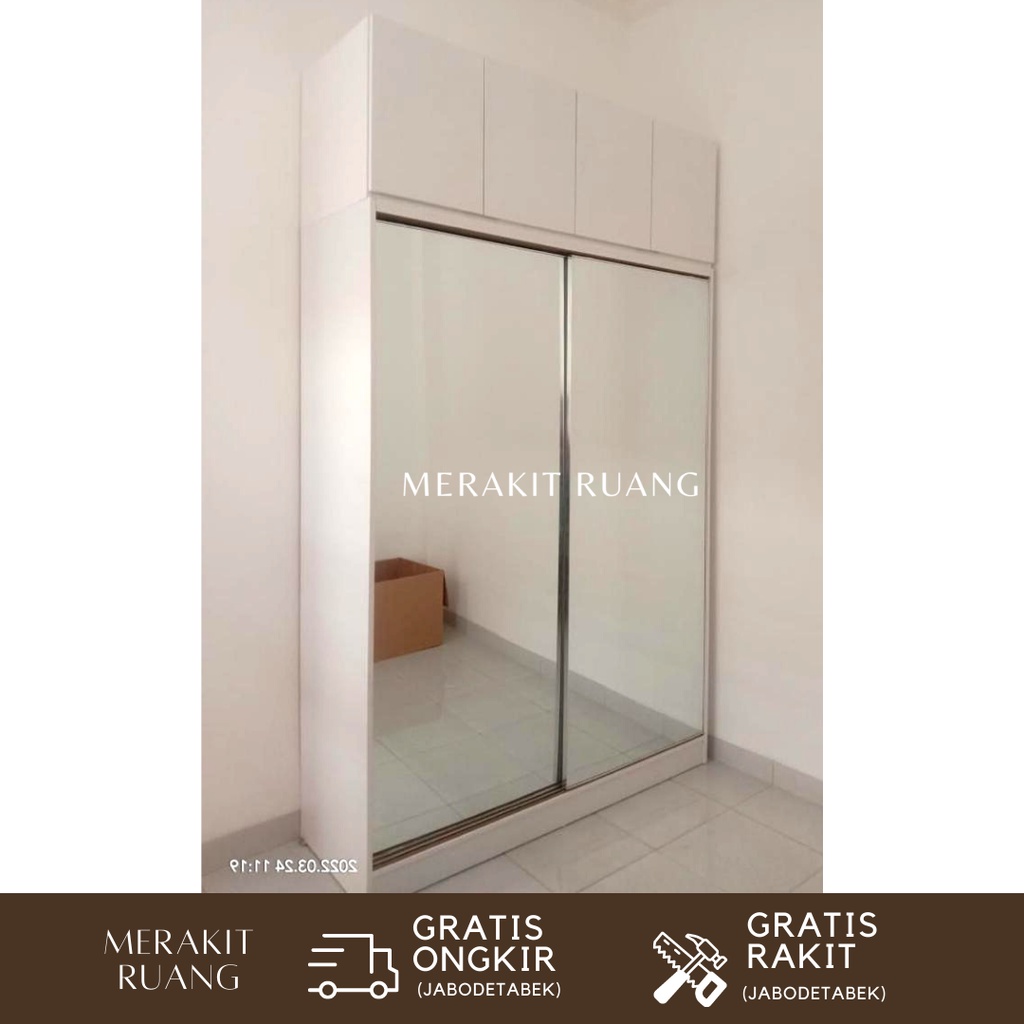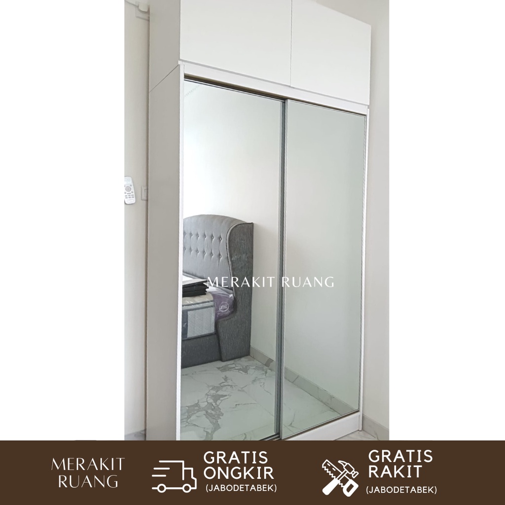 Lemari Pakaian Sliding Premium 2 Pintu Dengan Kabinet Atas Elegan
