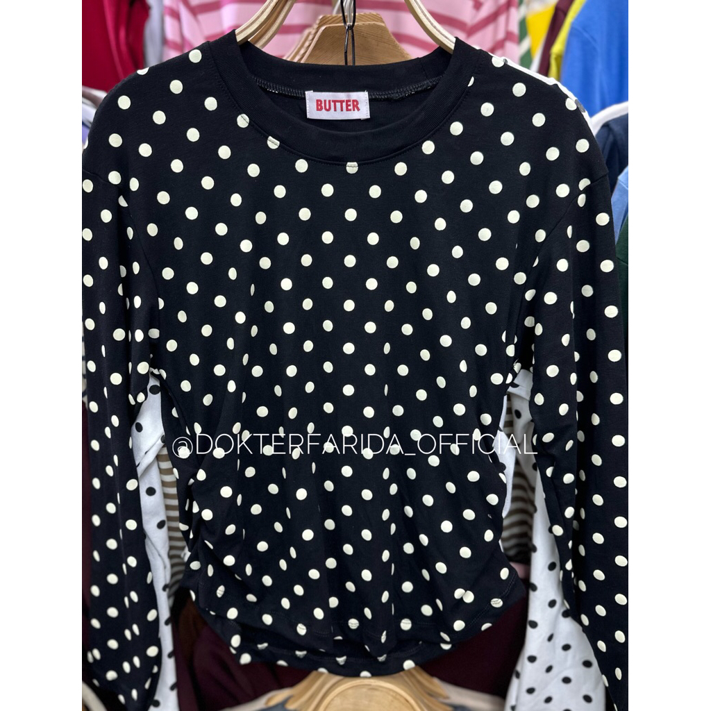 Brand Butter Kaos Atasan POLKADOT SERUT SAMPING Lengan Panjang