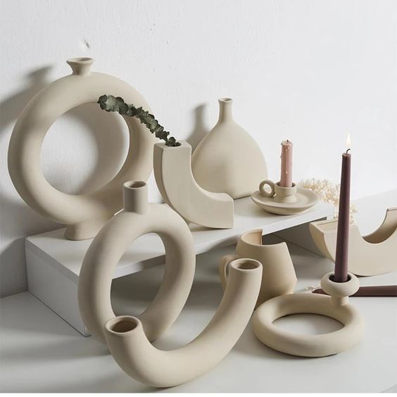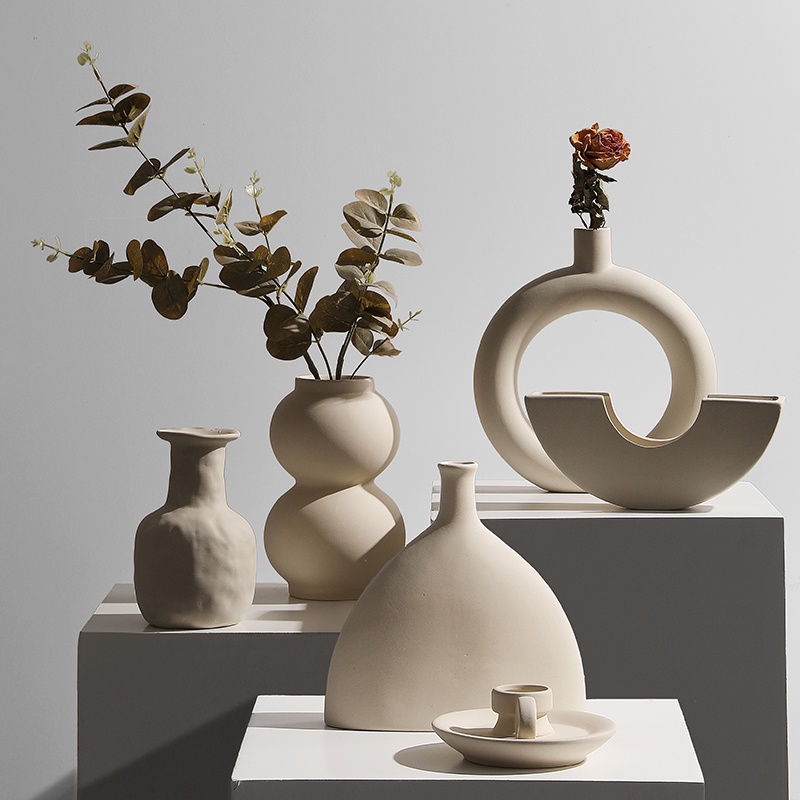Vas Bunga Aesthetic Keramik Abstract Embryo / Candle Holder / Pottery / Bunga Kering / Dekorasi Rumah / Vas Korean / Vas Nordic - Odessa Home