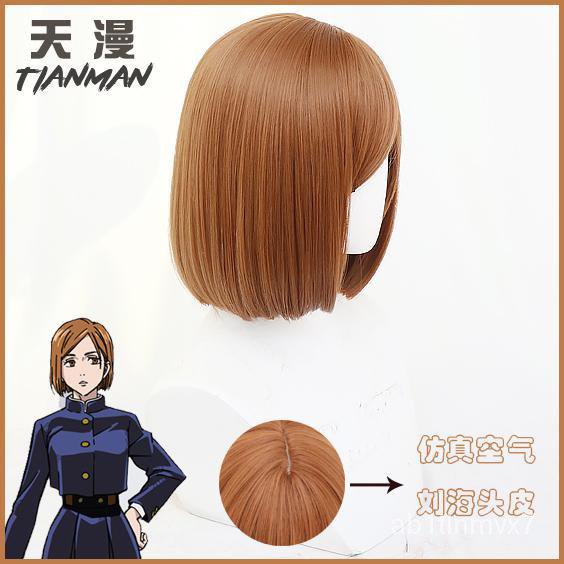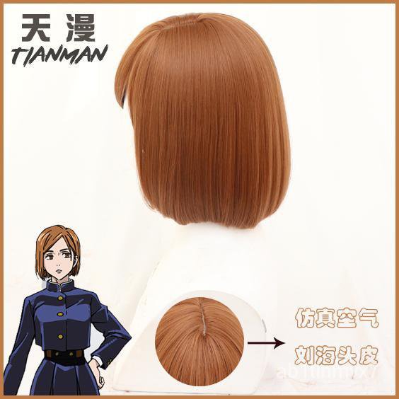 Anime Jujutsu Kaisen Nobara Kugisaki Cosplay Wig Brown Heat Resistant Synthetic Hair Costume Wigs