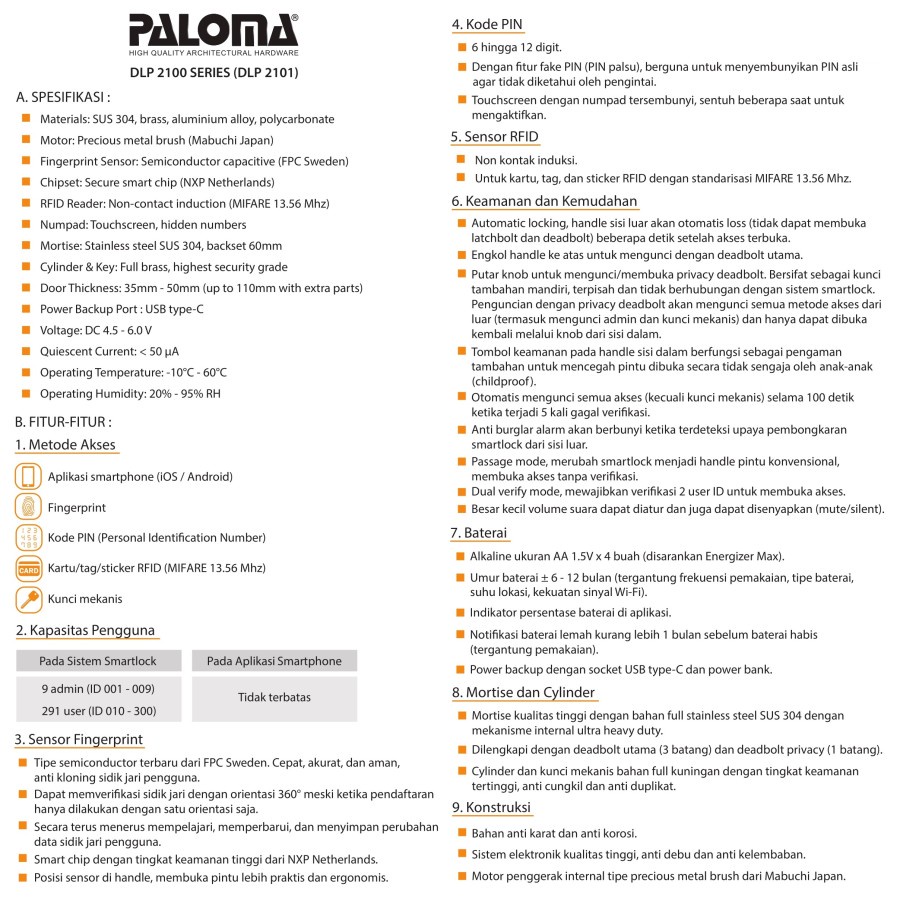 PALOMA DLP 2101 Digital Lock Smart Home Kunci Pintu Door Handle WiFi