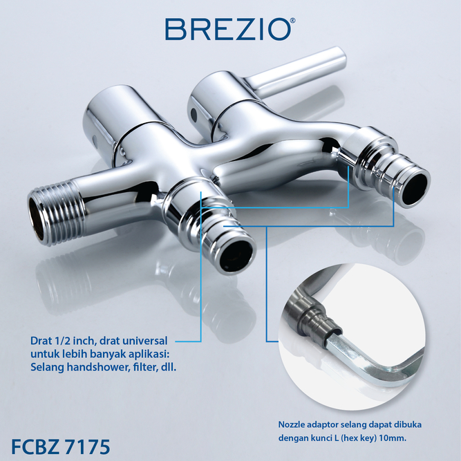 BREZIO FCBZ 7175 Keran Cabang Mesin Cuci Taman Double Tembok Kran Air