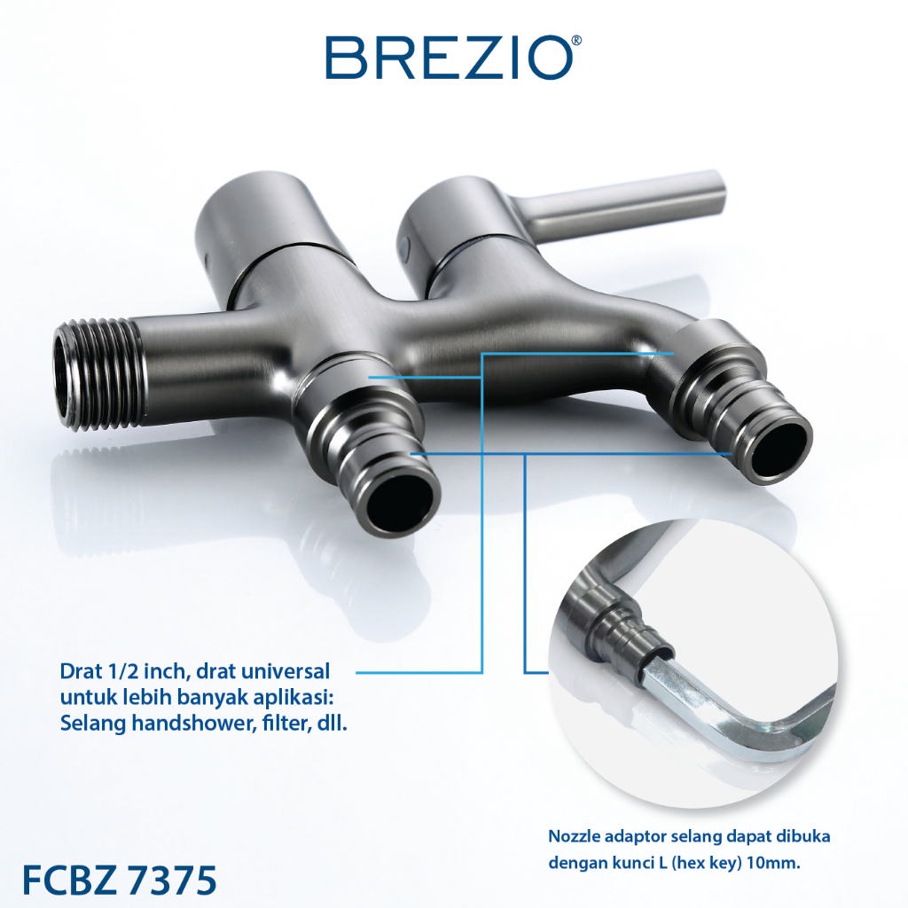 BREZIO FCBZ 7375 Keran Cabang Mesin Cuci Taman Double Tembok Kran Air