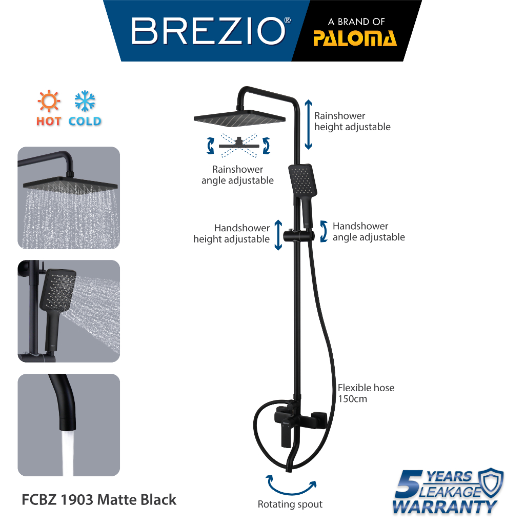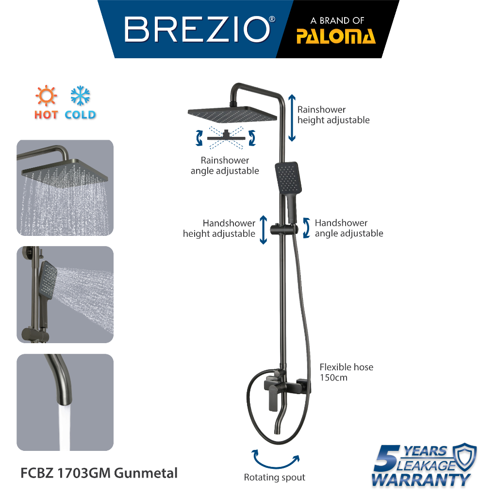 BREZIO Shower Tiang Set Column Keran Mandi Kran Air Panas Dingin Faucet Bathtub Bath Shower Mixer Hot Cold Kamar Mandi Bathroom Chrome Krom Silver Grey Abu Black Hitam Gunmetal Gun Metal FCBZ 1703 FCBZ 1703GM FCBZ 1903