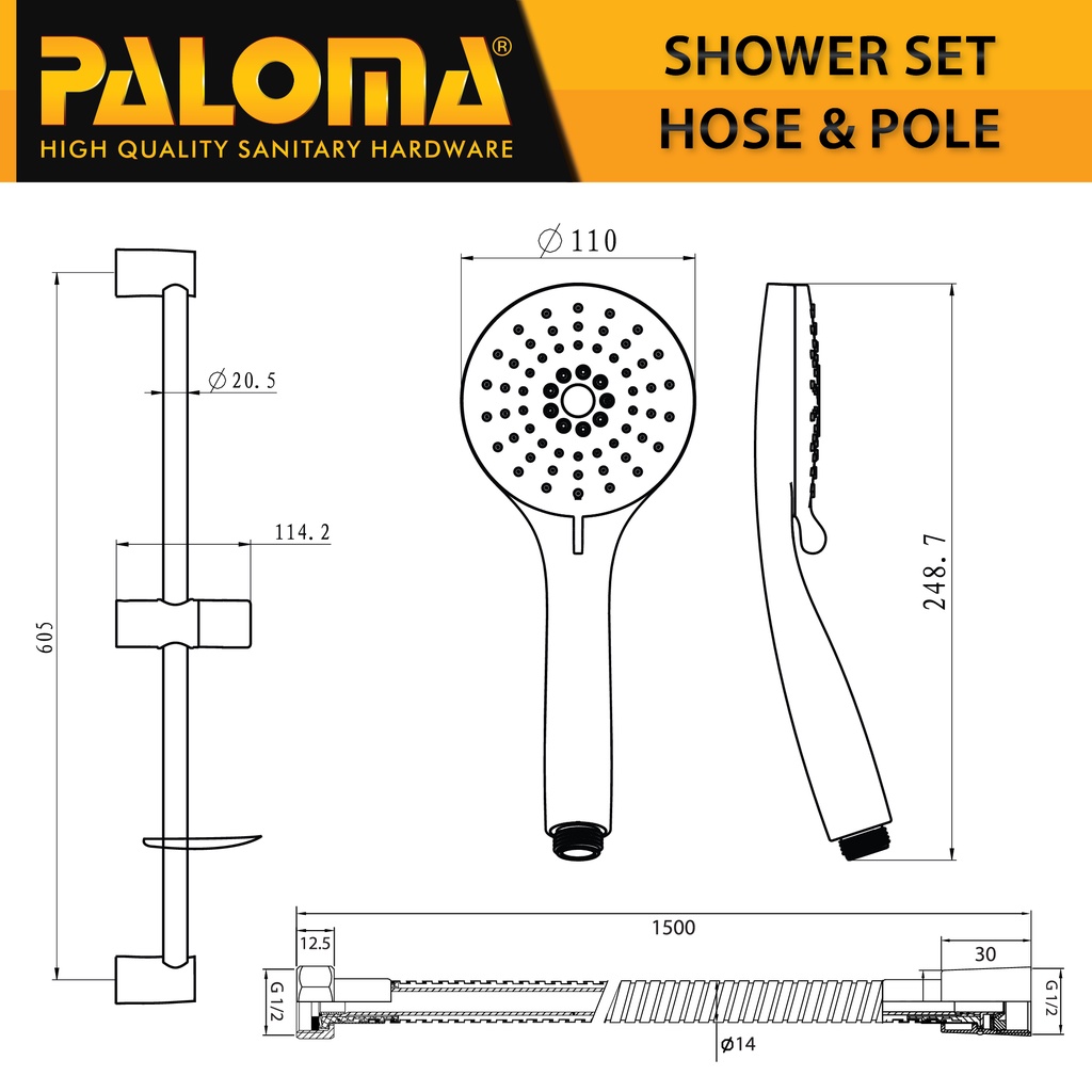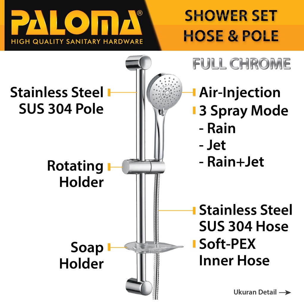 PALOMA FCSP 2506 Paket Keran Mixer Shower Set Tiang Panas Dingin Kran