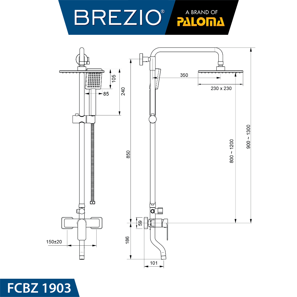 BREZIO FCBZ 1903 Shower Tiang Set Column Mandi Keran Kran Panas Dingin