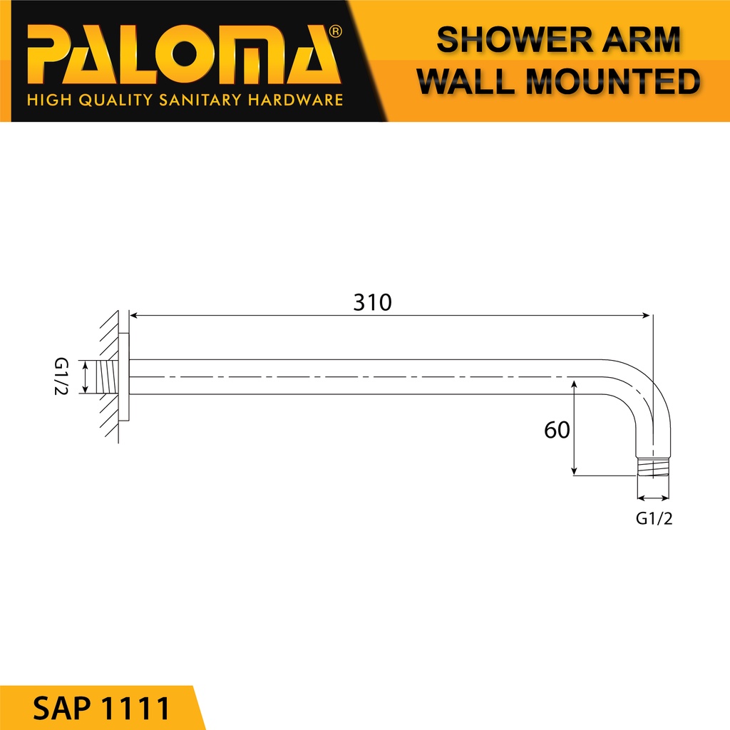 PALOMA SAP 1111 Wall Shower Arm Pipa Rainshower Headshower Dinding