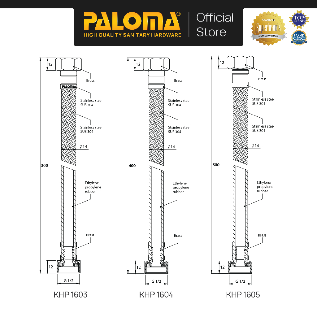PALOMA Flexible Hose Selang Kran Wastafel Toilet Selang Anyam Rajut KHP 1603 1604 1605 30cm 40cm 50cm