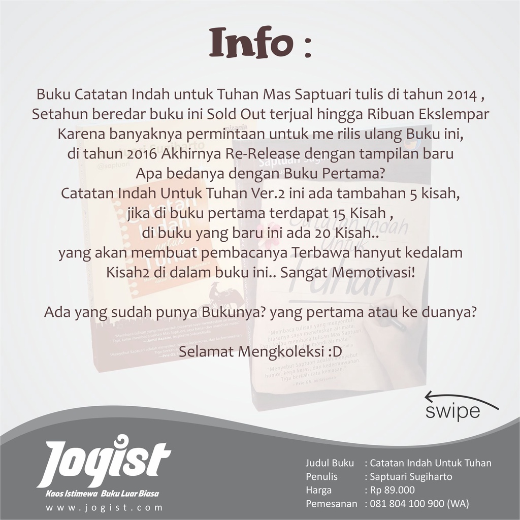 Buku Catatan Indah Untuk Tuhan - Saptuari Sugiharto