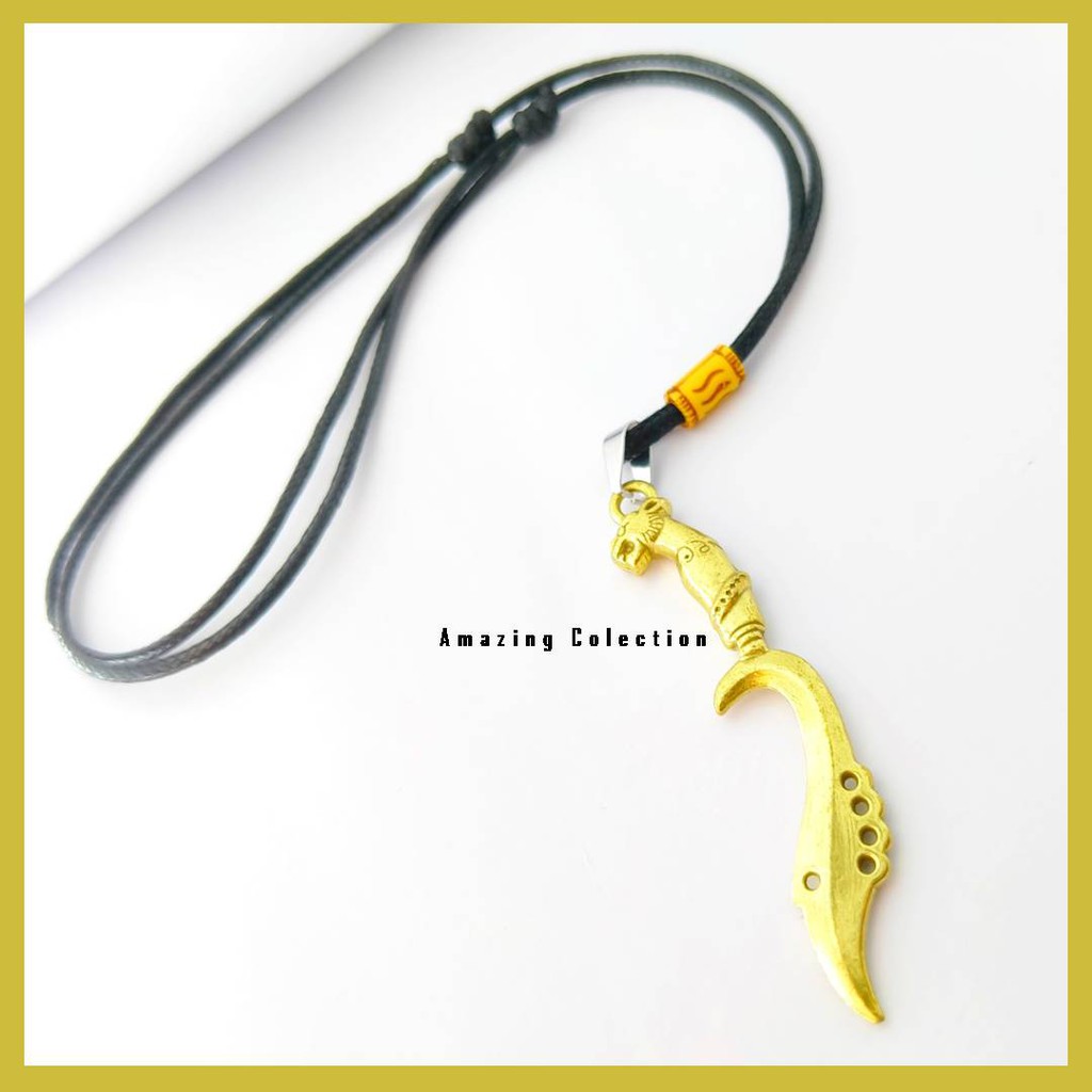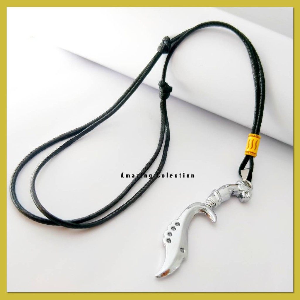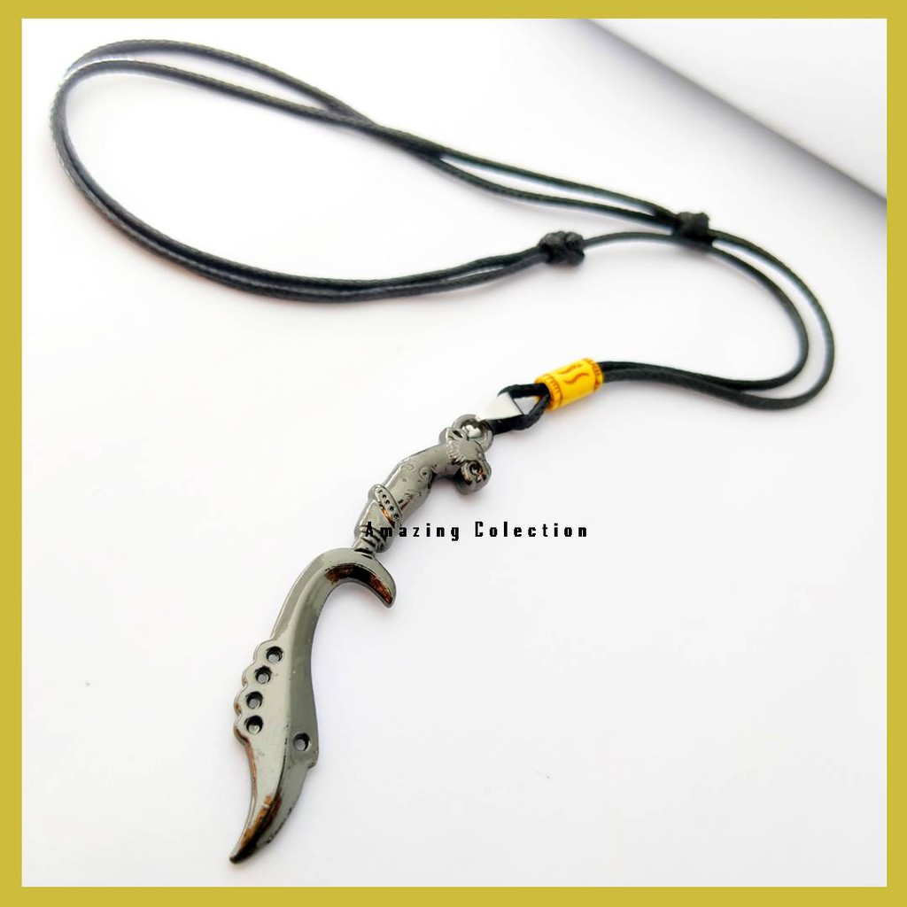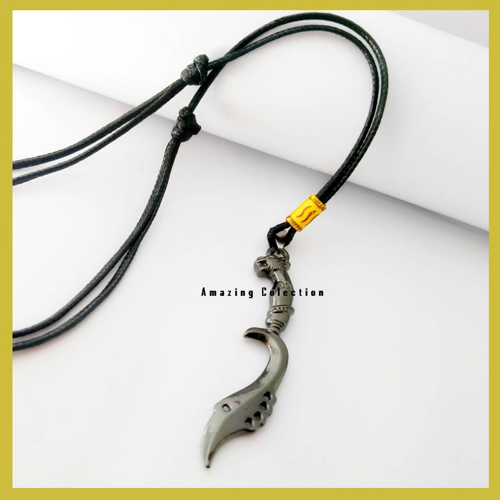 Kalung Tali Pria Keren Terbaru Tali Korea Hitam Bandul Kujang Stainless Steel Anti Luntur Anti Karat