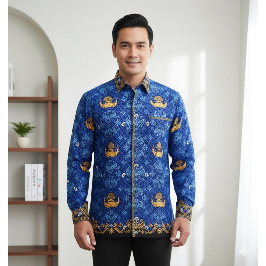 Kemeja Batik KORPRI Premium Furing Kombinasi Smock Katun C50 Tailoring