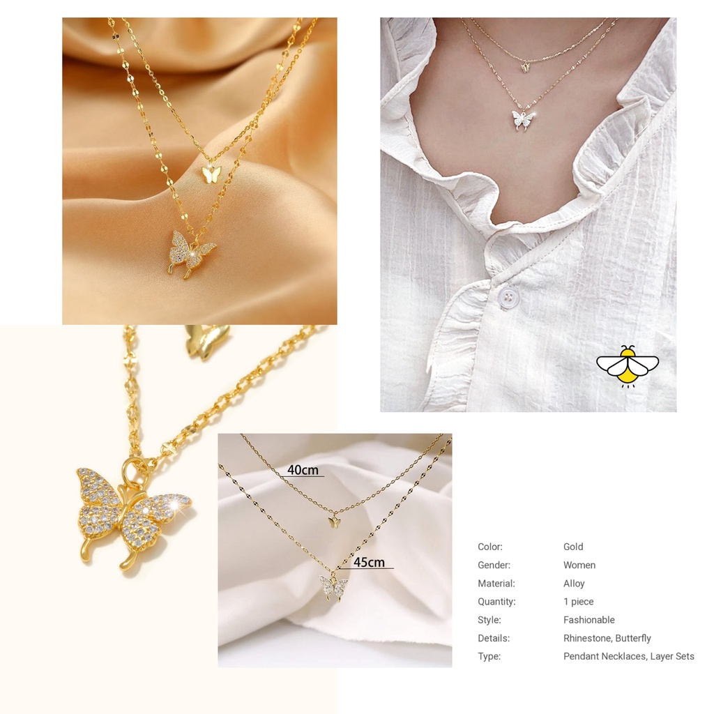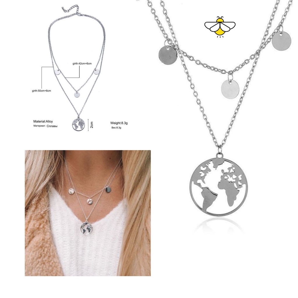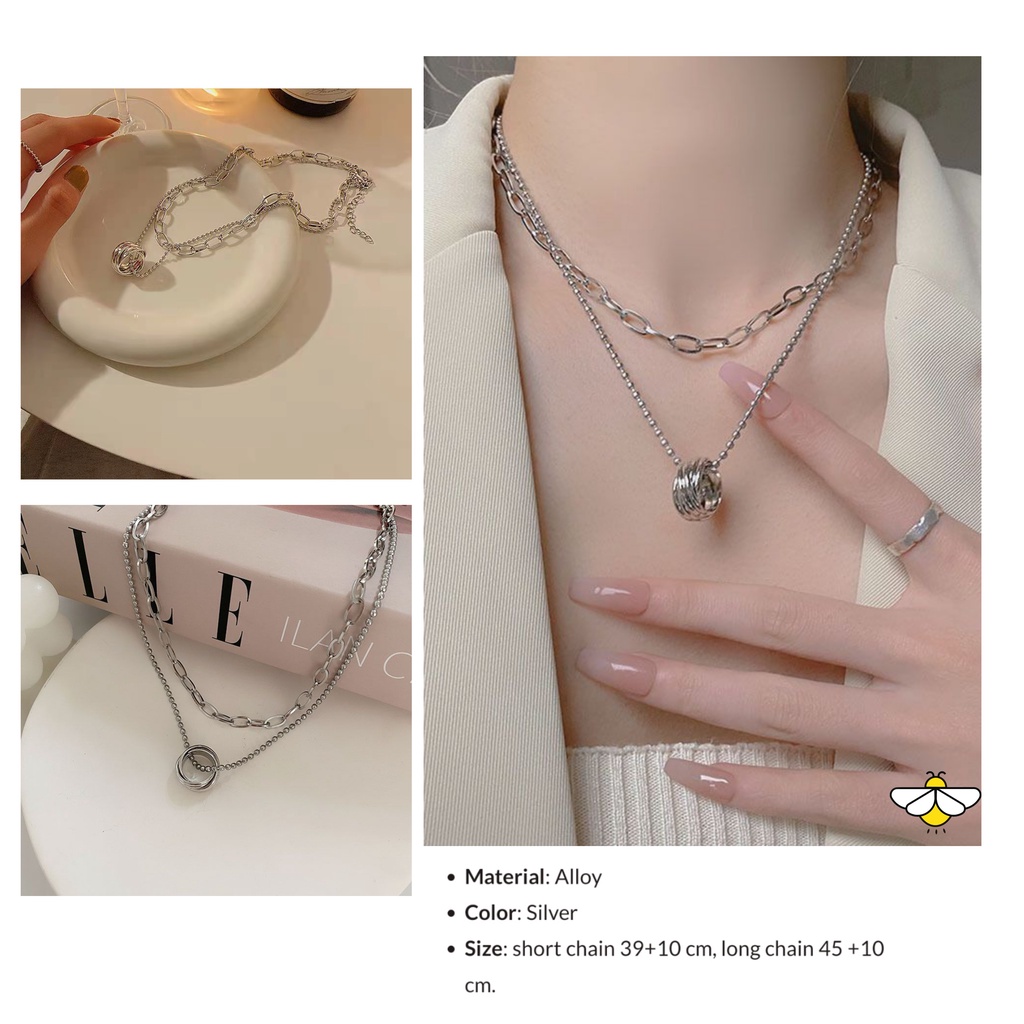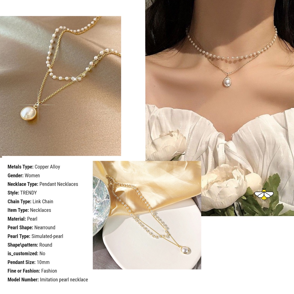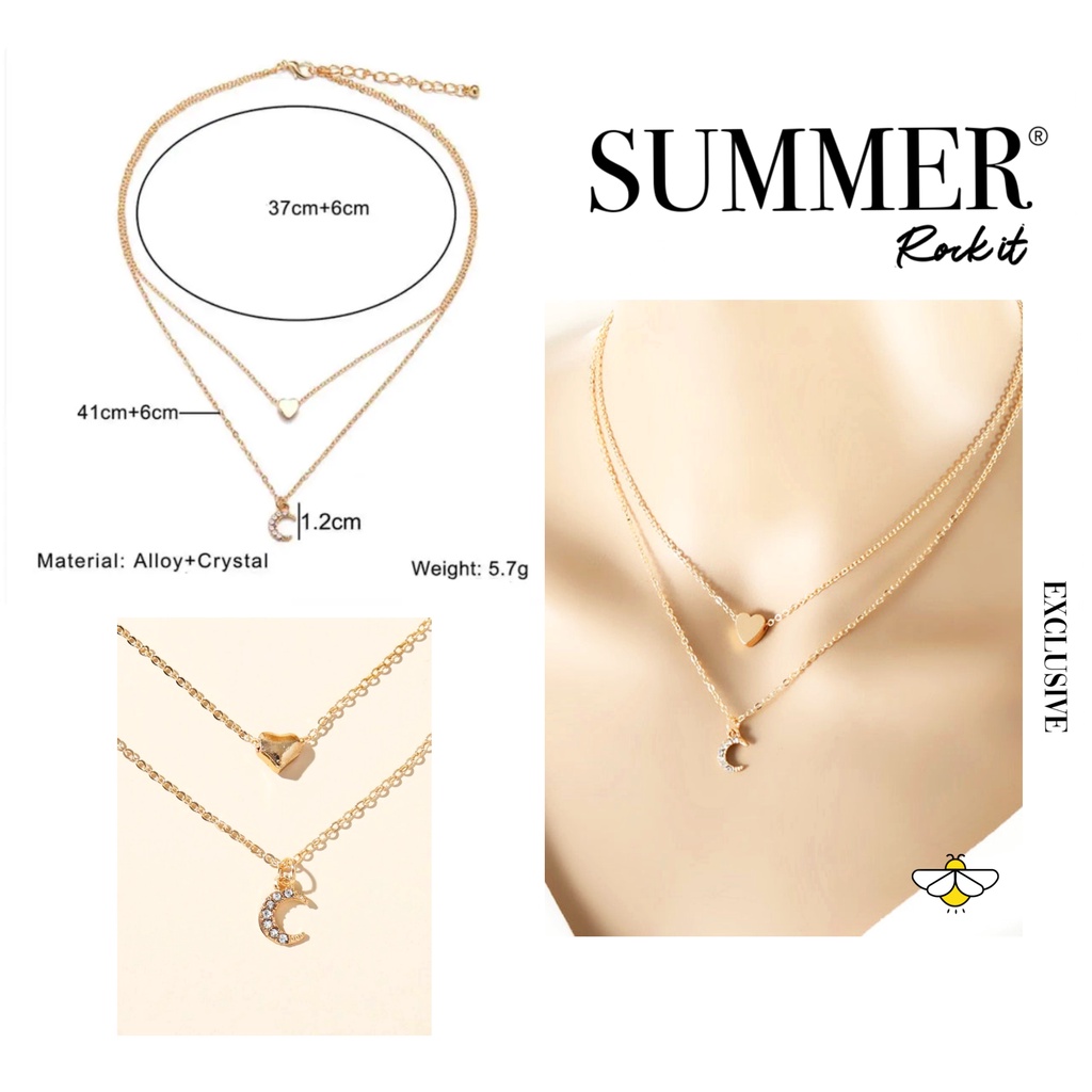 Kalung Wanita Hijab Multilayer Bertingkat Warna Gold Silver Gaya Korea Retro Aksesoris Kalung Rantai Moon Mutiara Gembok Potret Gaya vintage/Kalung wanita Ootd