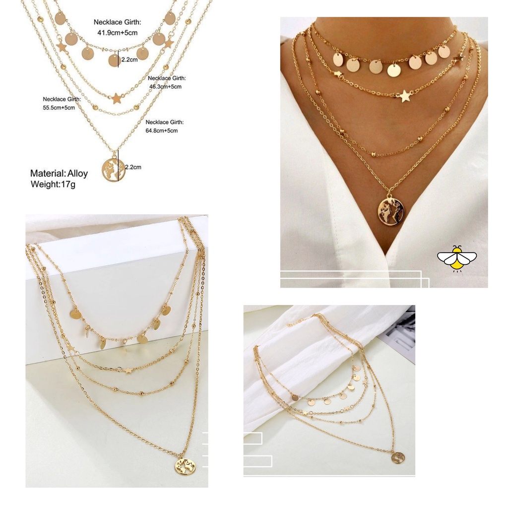 Import Kalung Rantai Layer Silver Liontin Kalung Gembok Retro Simple Aksesoris Fashion Korea