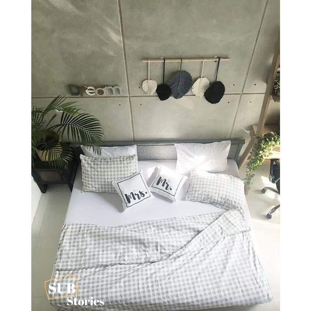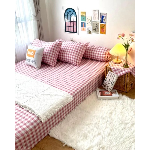 SUBstories Sprei Katun Lokal Anti Geser Elastic Lock Aesthetic Motif Gingham series Katun 100 120 160 180 200x200