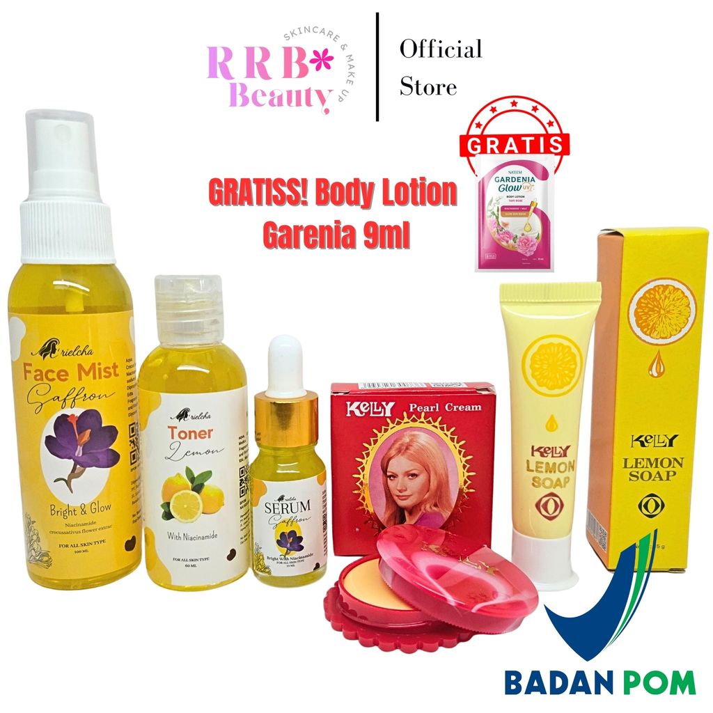 [ FREE Lotion 9ml ] Paket Kelly 5in1 - Kelly Pearl Cream 5gr, Lemon Soap 15gr, Serum Saffron, Face Mist Saffron & Toner Lemon untuk Perawatan Wajah