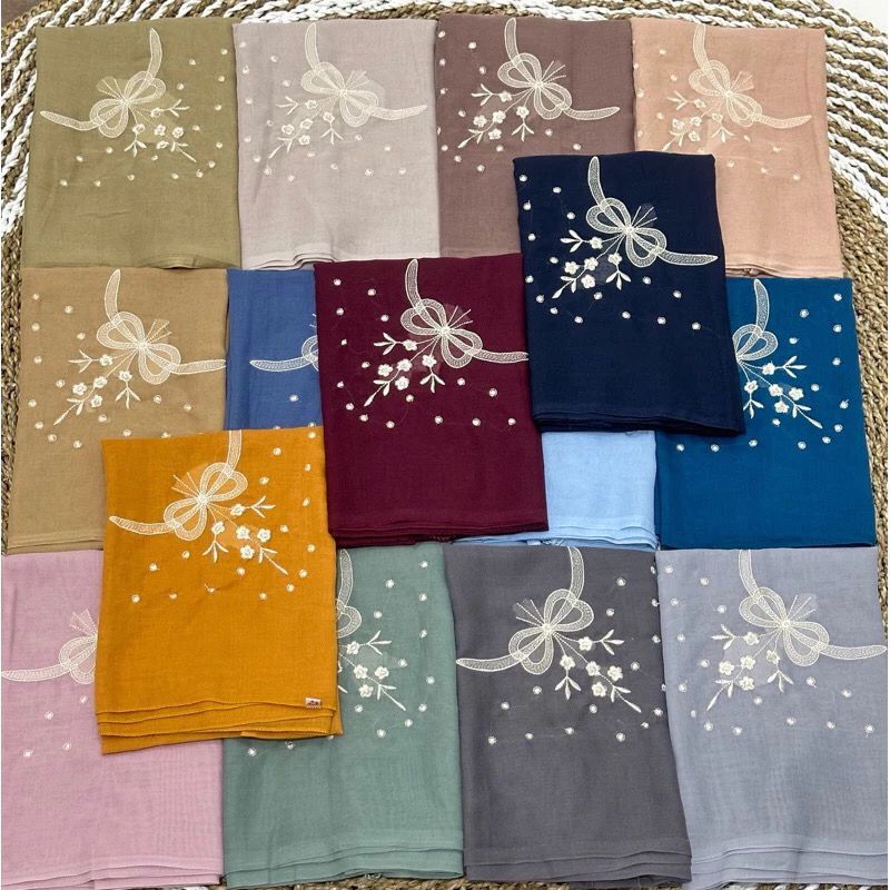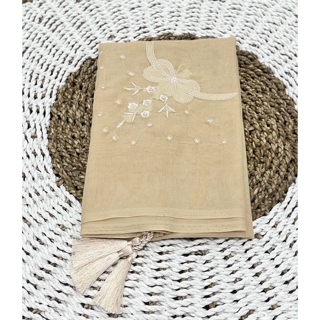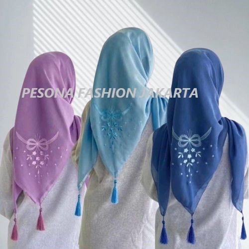 Pesona Fashion Hijab Paris Coquette Bordir Pita Sayap Bunga Ori Tassel