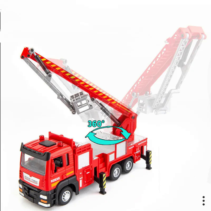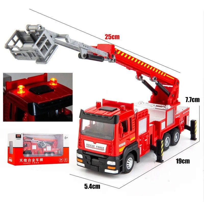 1:50 Baru Model Truk Api Tangga Tarik Ke Belakang, Kemasan Asli Mainan Mobil Penyelamatan Api, Hadiah Anak-anak, Grosir
