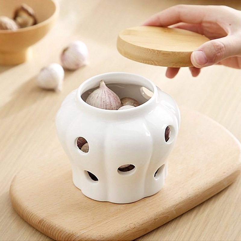 Penyimpanan Keramik / Toples Berongga / Toples Penyimpanan Bawang Putih Jahe Dapur Tempat Bawang