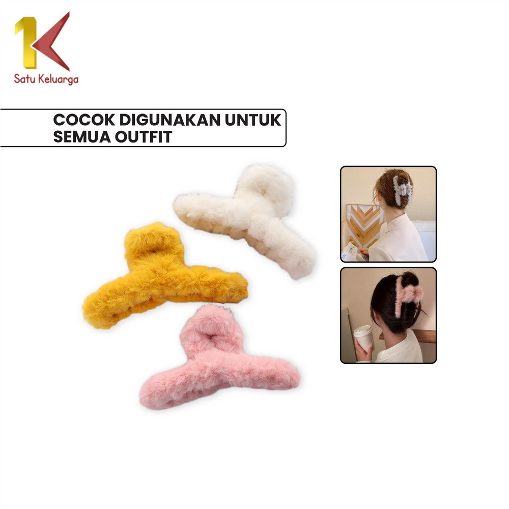 Satu Keluarga Jedai Jepit Rambut Bulu Wanita Korea C1055 Jepitan Salon Soft Aksesoris Rambut Polos
