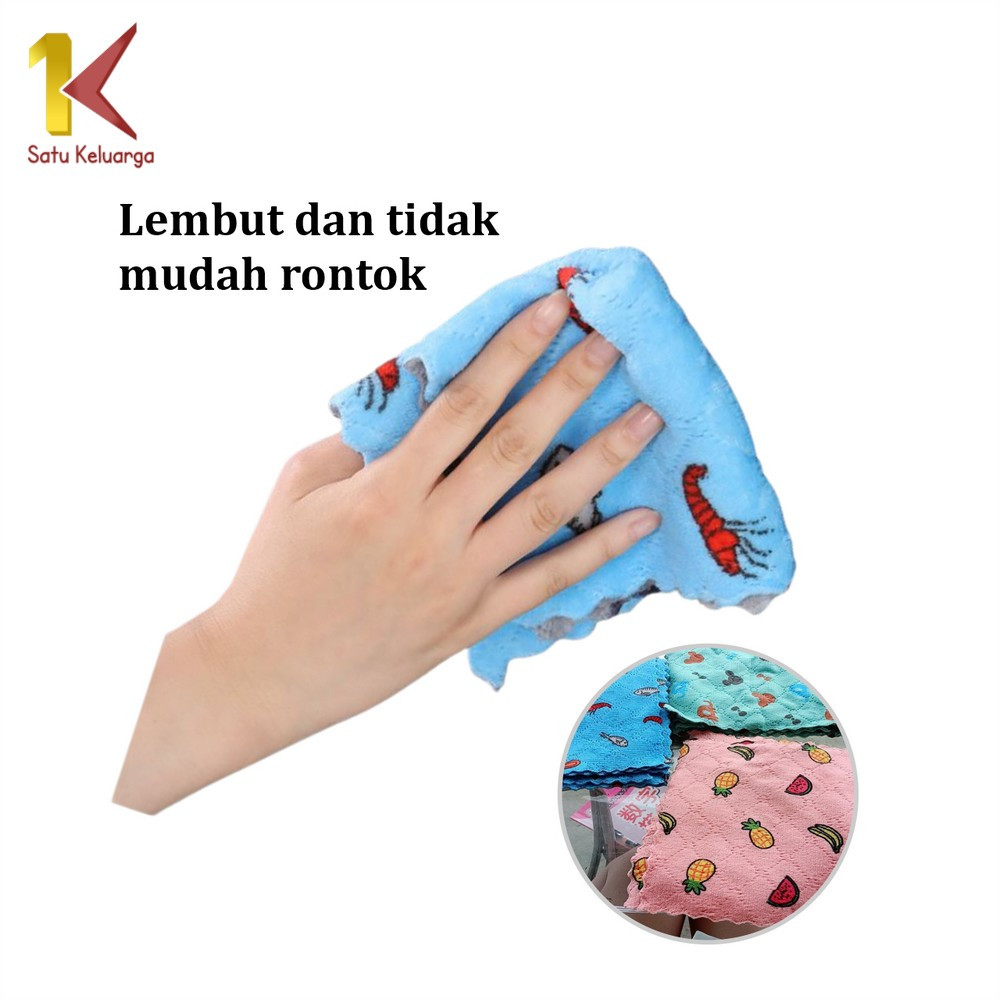 Satu Keluarga Kain Lap Dapur Microfiber C562 Lap Pengering Cuci Piring Lembut Serap Air Serbaguna