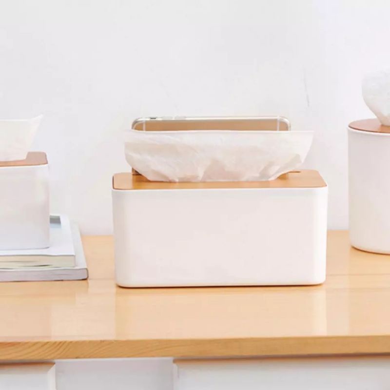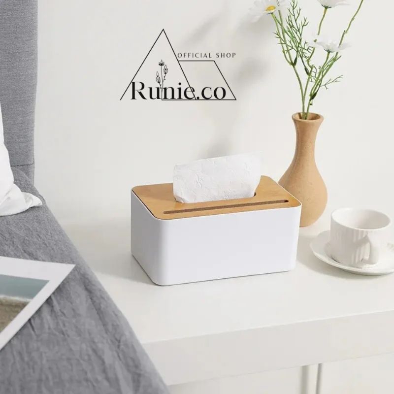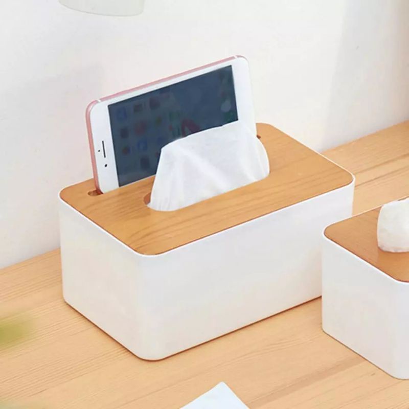 Runieco Kotak Tisu Kayu / Tissue Box dengan Holder handphone / Tempat Tisu aesthetic