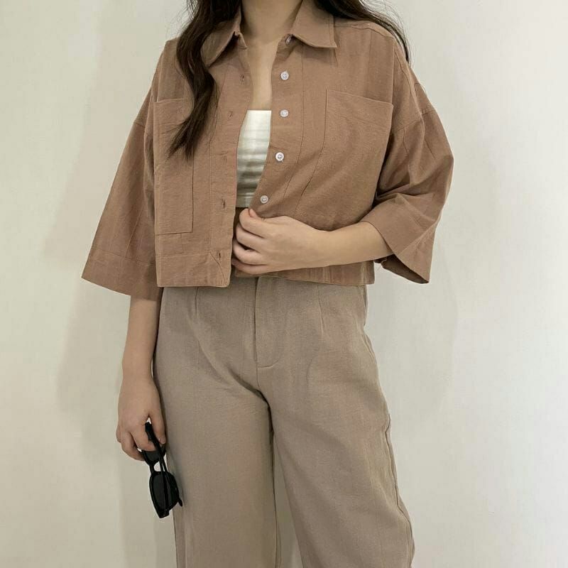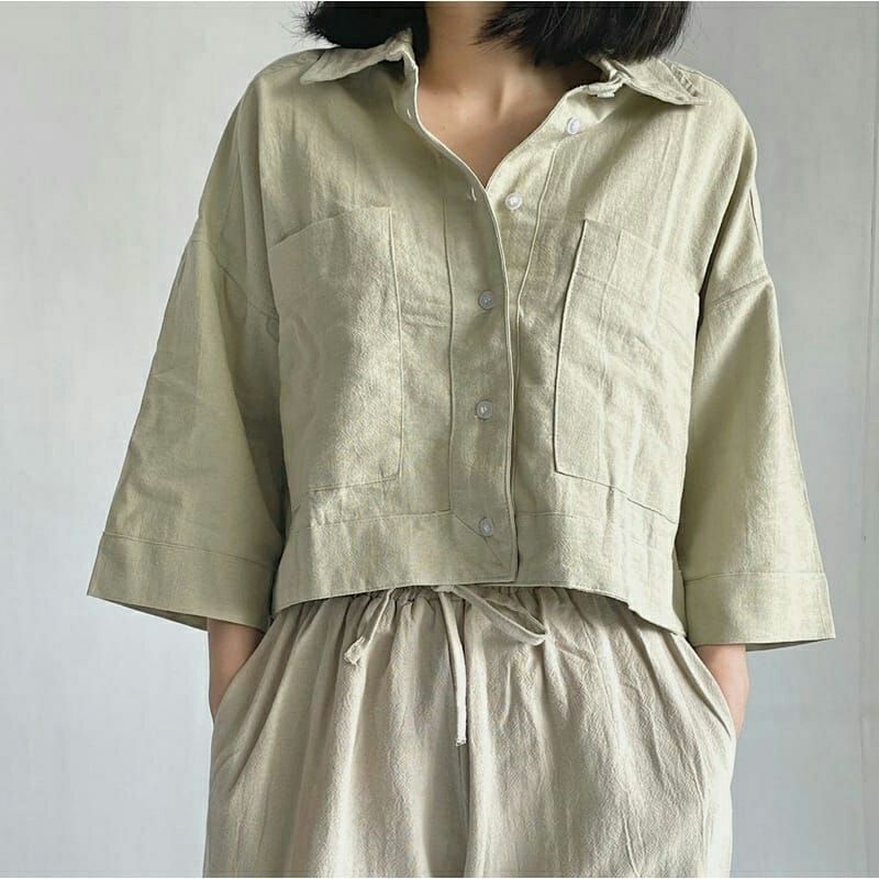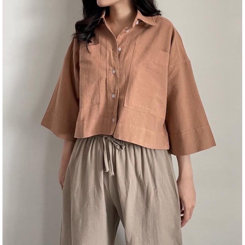 Baju Atasan Wanita Pocket Linen Outer Oversaize