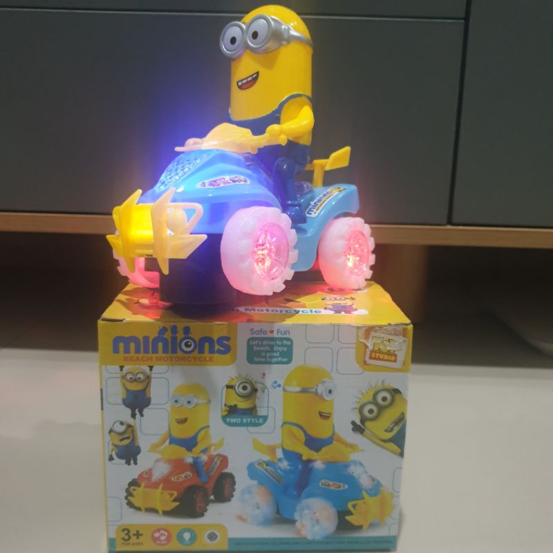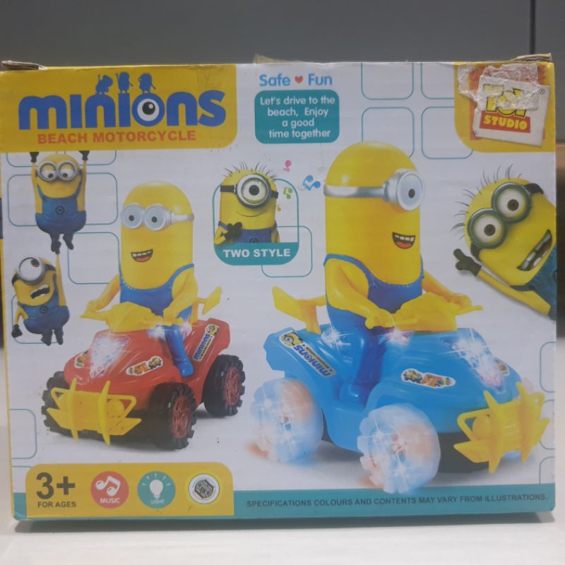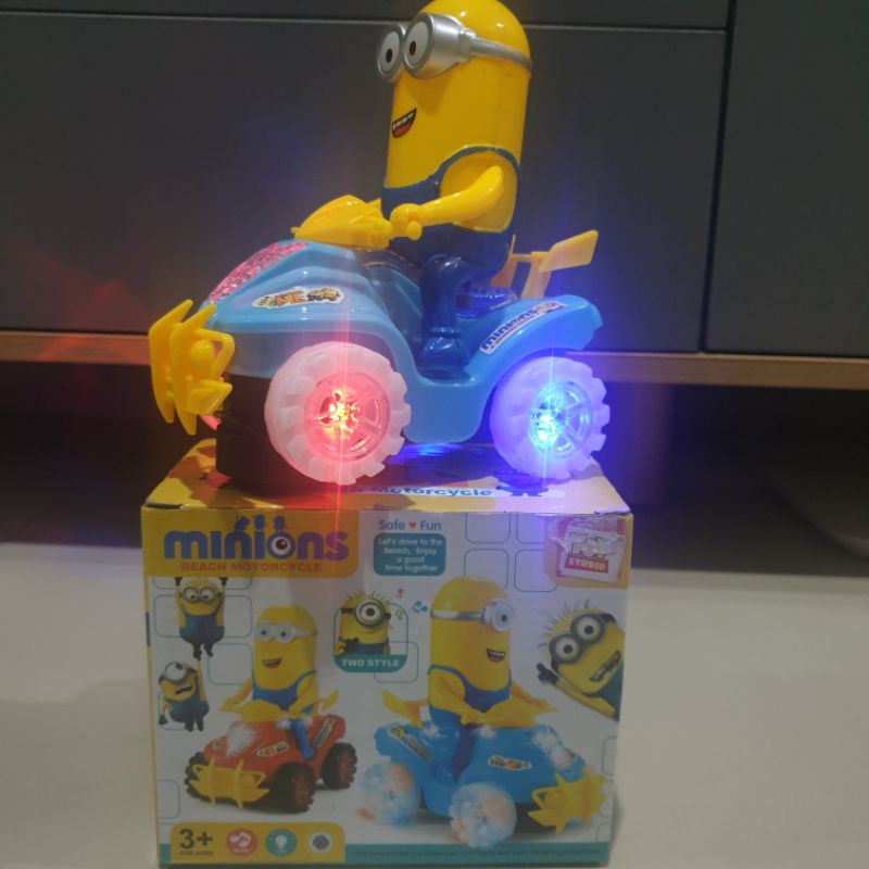 mainan boneka minions naik motor ATV berjalan musik dan lampu / mainan motor