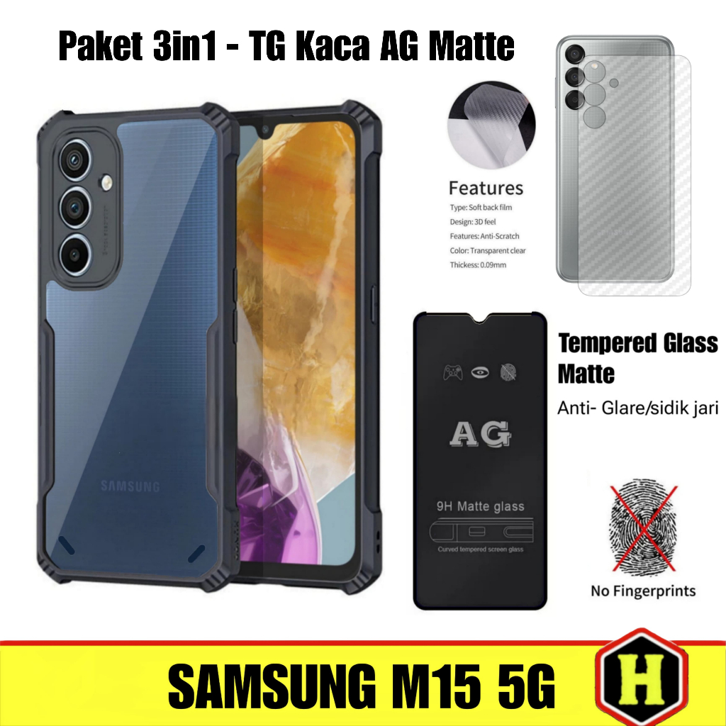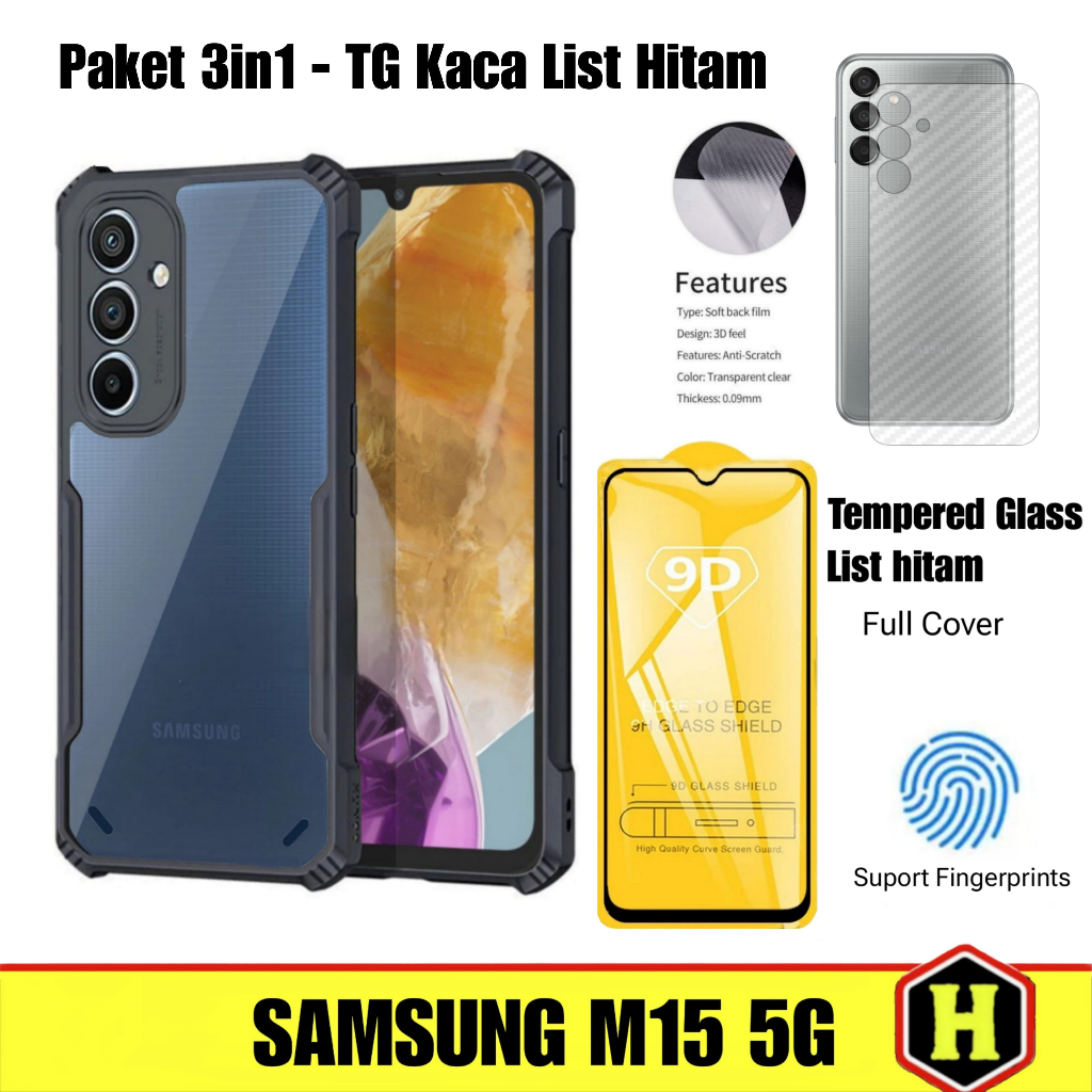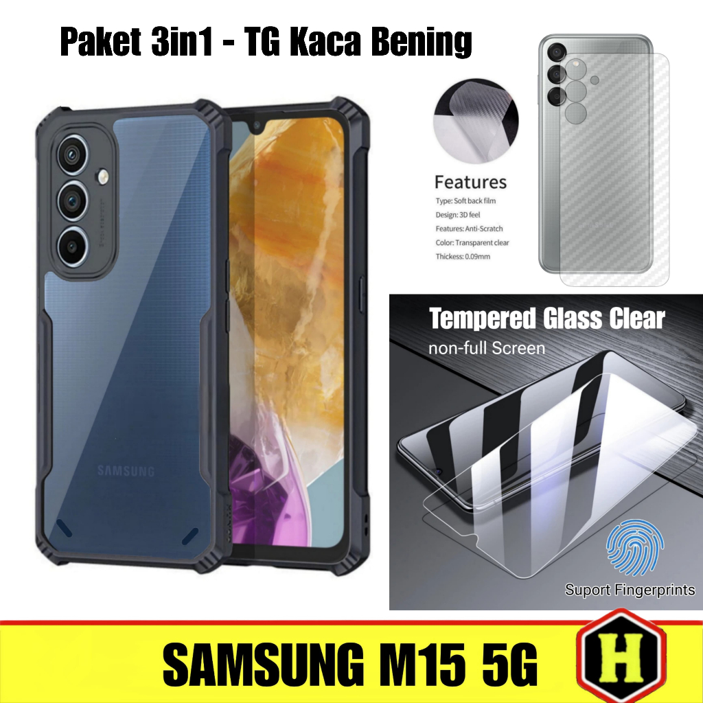 Paket 3in1 Case Fusion Samsung M15 5G | Samsung F15 5G Free Tempered Glass Layar & Skin Carbon