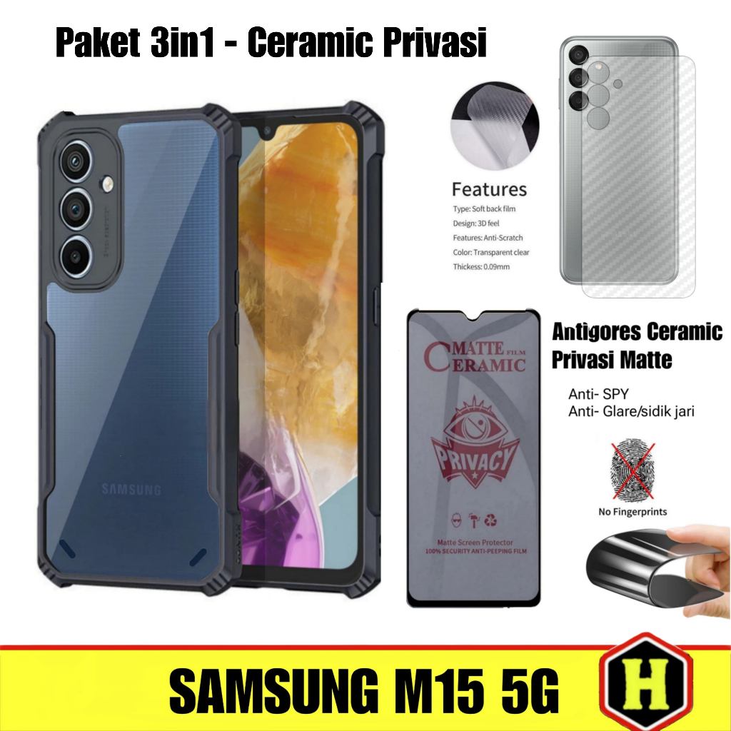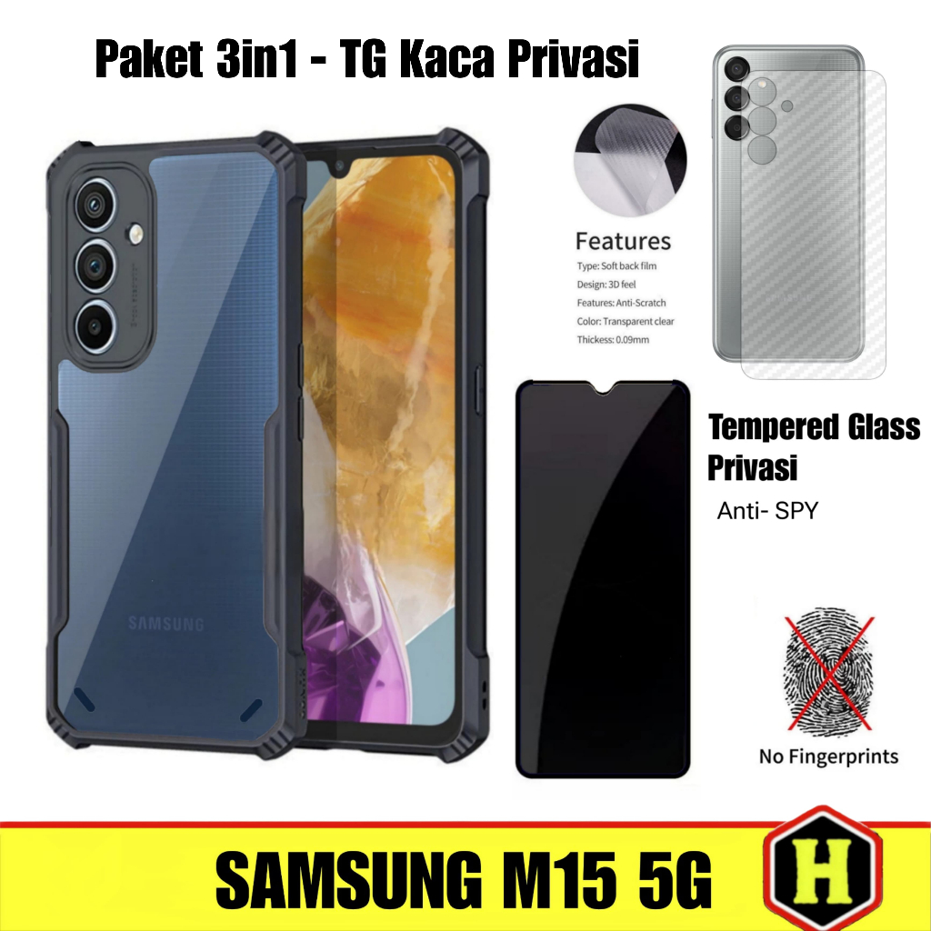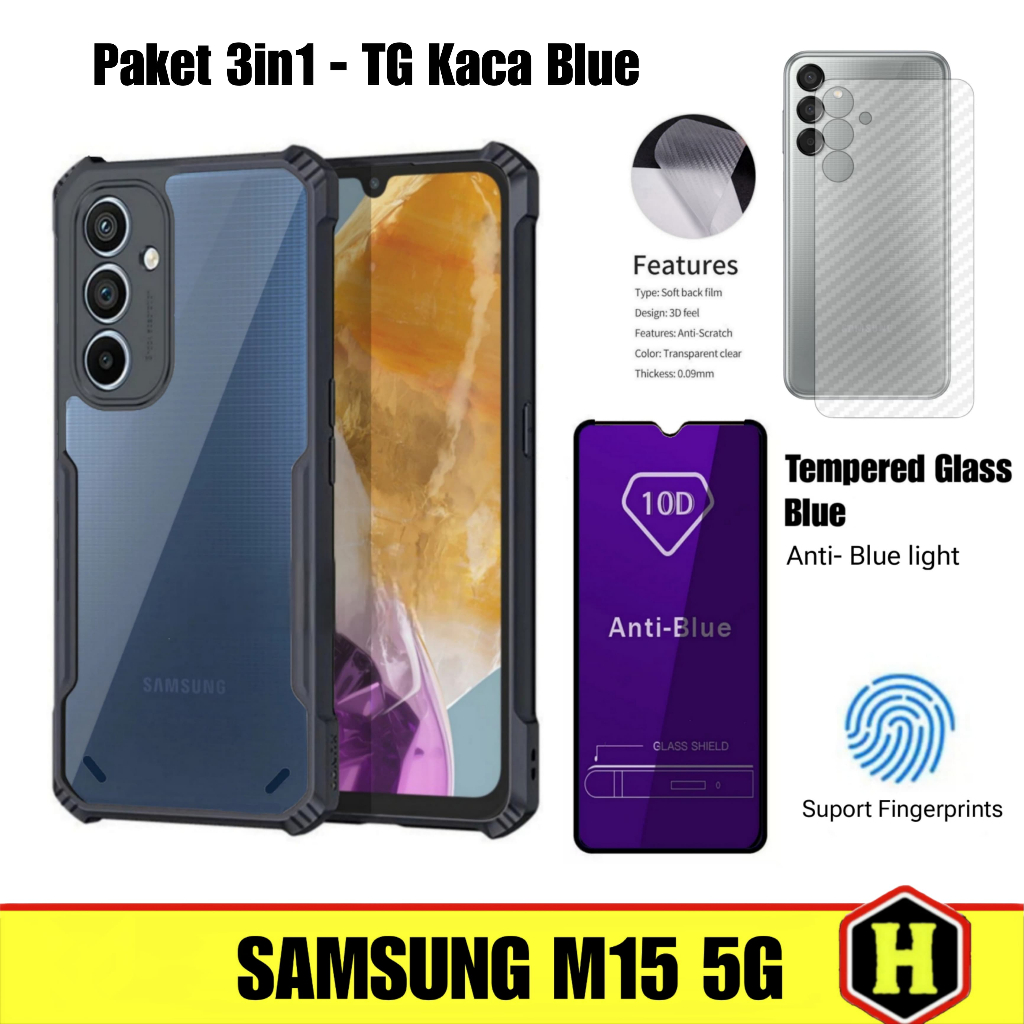 Paket 3in1 Case Fusion Samsung M15 5G | Samsung F15 5G Free Tempered Glass Layar & Skin Carbon
