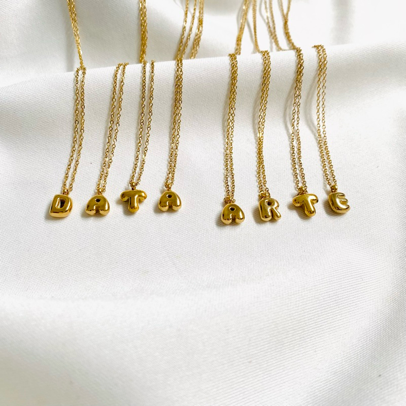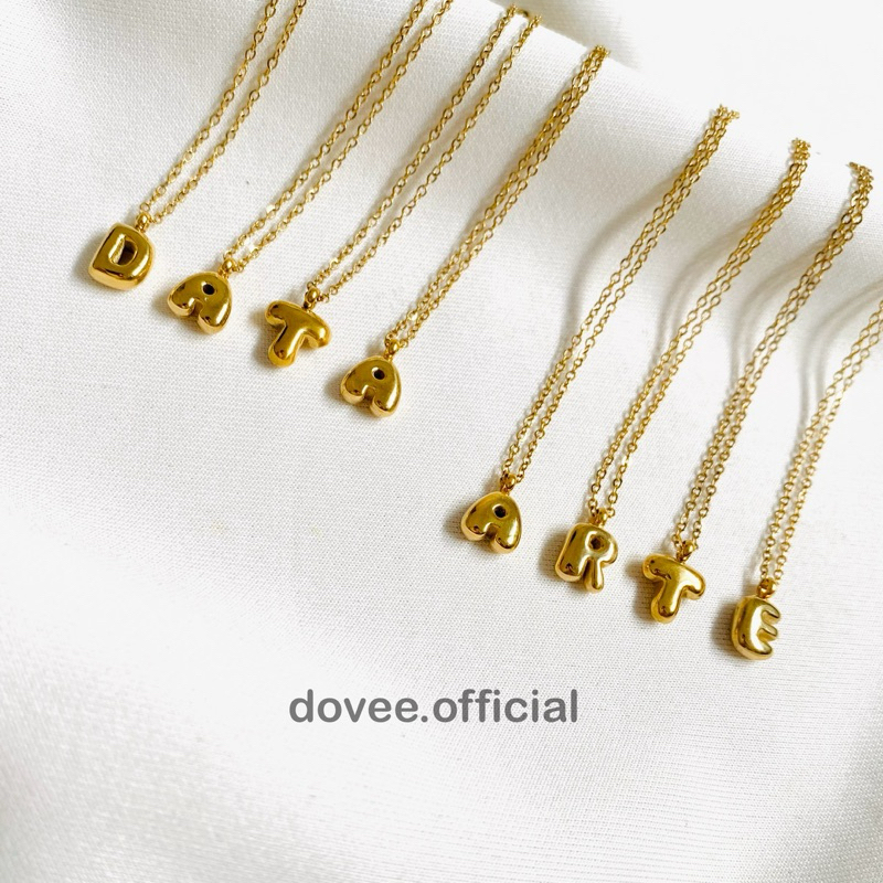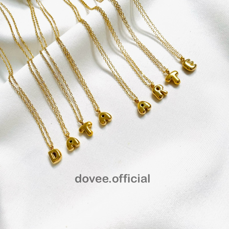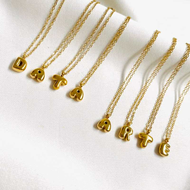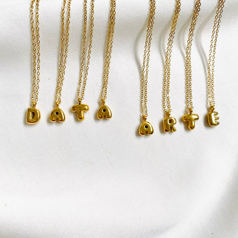TITANIUM Bubble Initial Necklace | kalung inisial huruf lucu cute gold - stainless steel lapis emas anti karat
