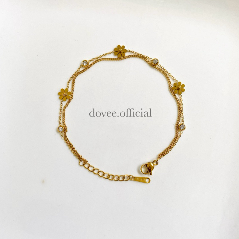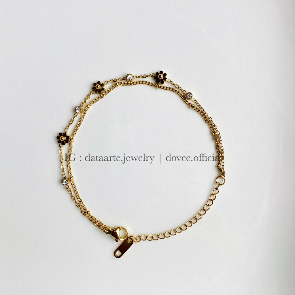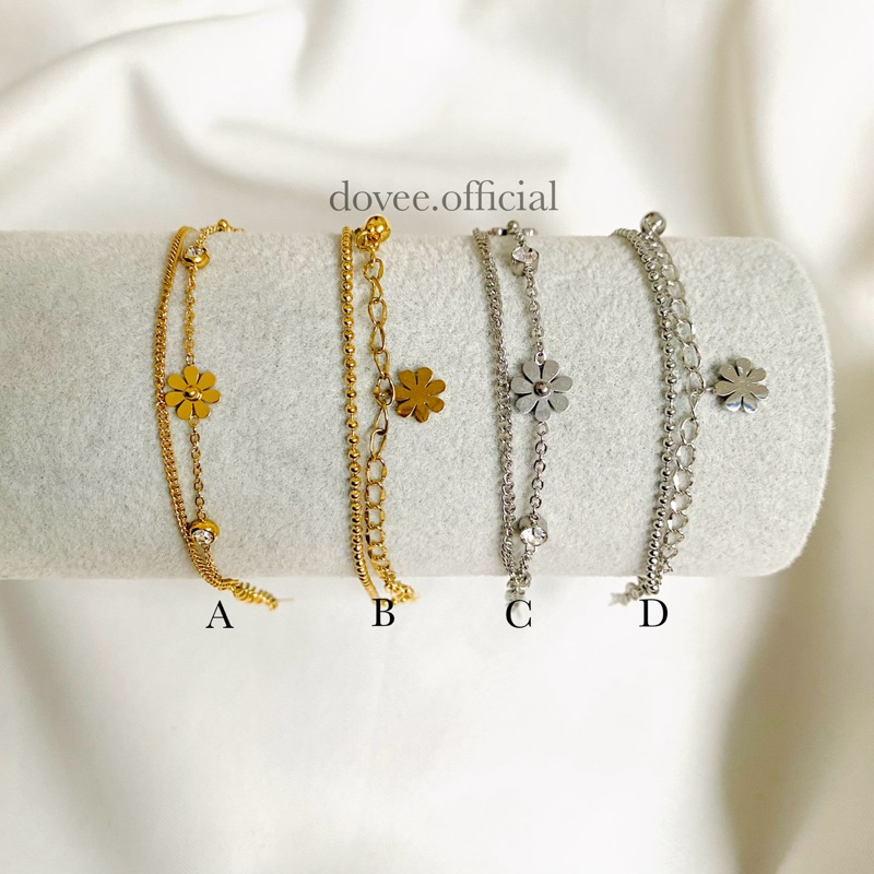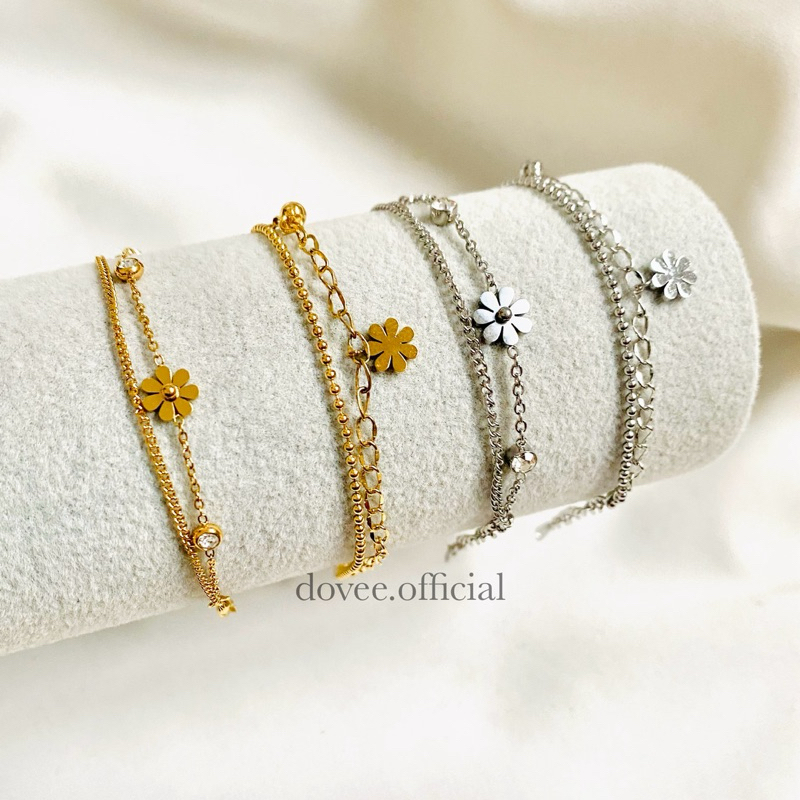 TITANIUM DAISY Double Layer Bracelet | Gelang bunga daisy permata cantik gold rosegold silver - stainless steel lapis emas anti karat