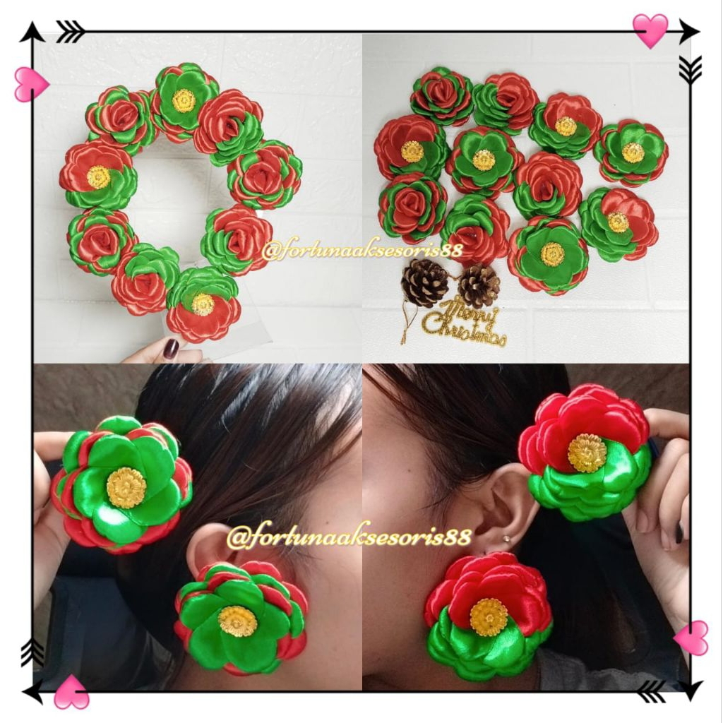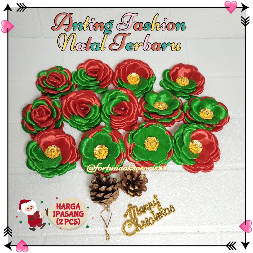 (1PSG) ANTING NATAL BUNGA TERBARU / GIWANG NATAL HIJAU MERAH / ANTING NATAL TUSUK KAIT KLIP CLIP / ANTING FASHION NATAL ELEGAN / NEW CHRISTMAS EARRING / PBM8640