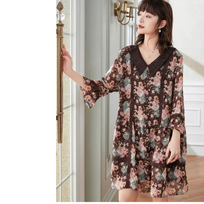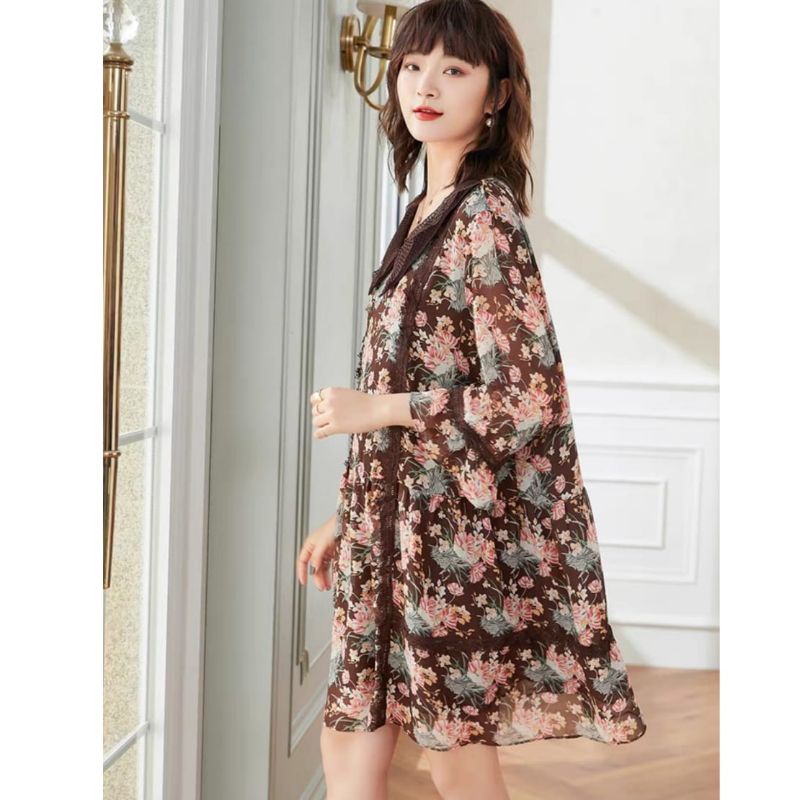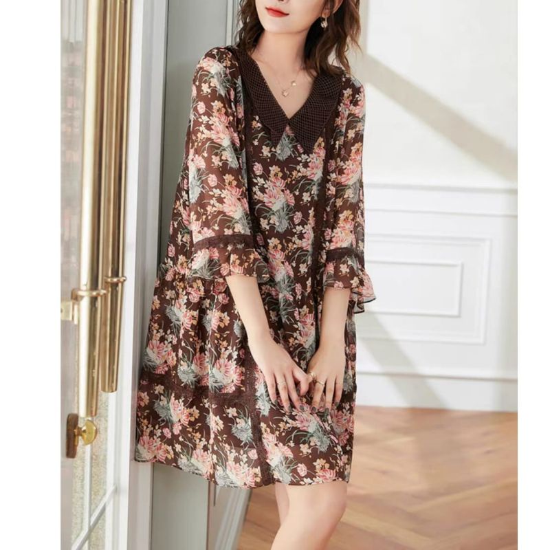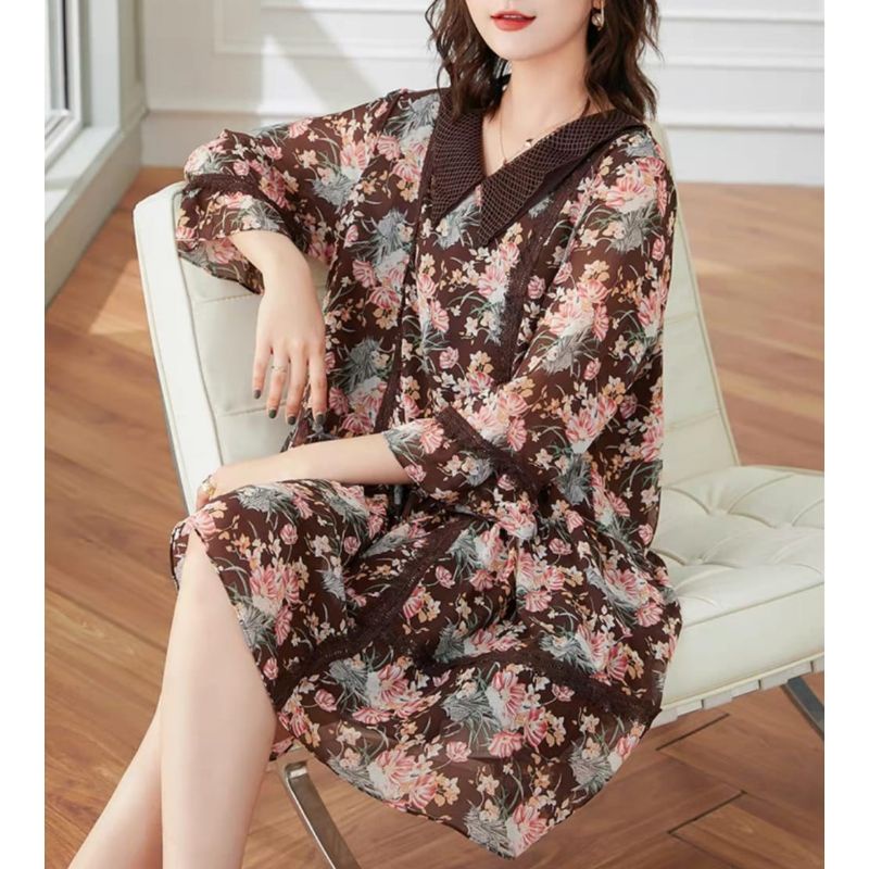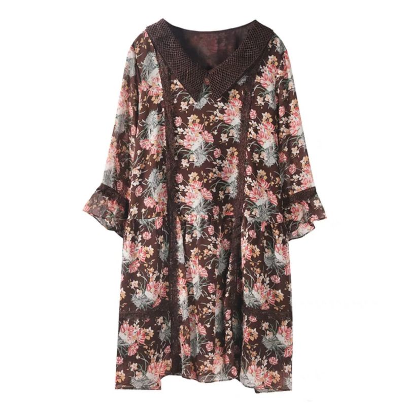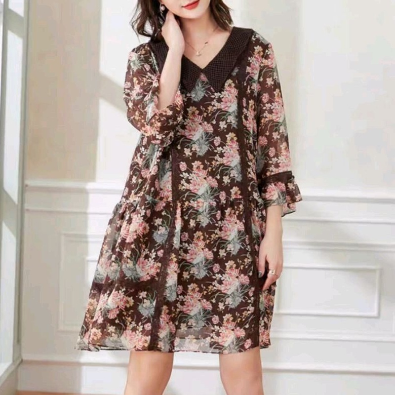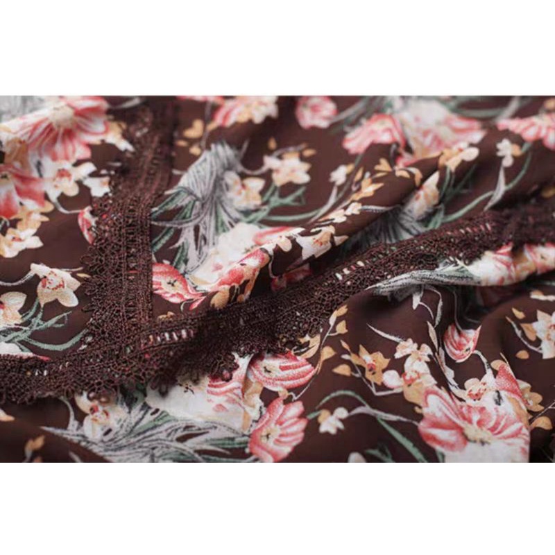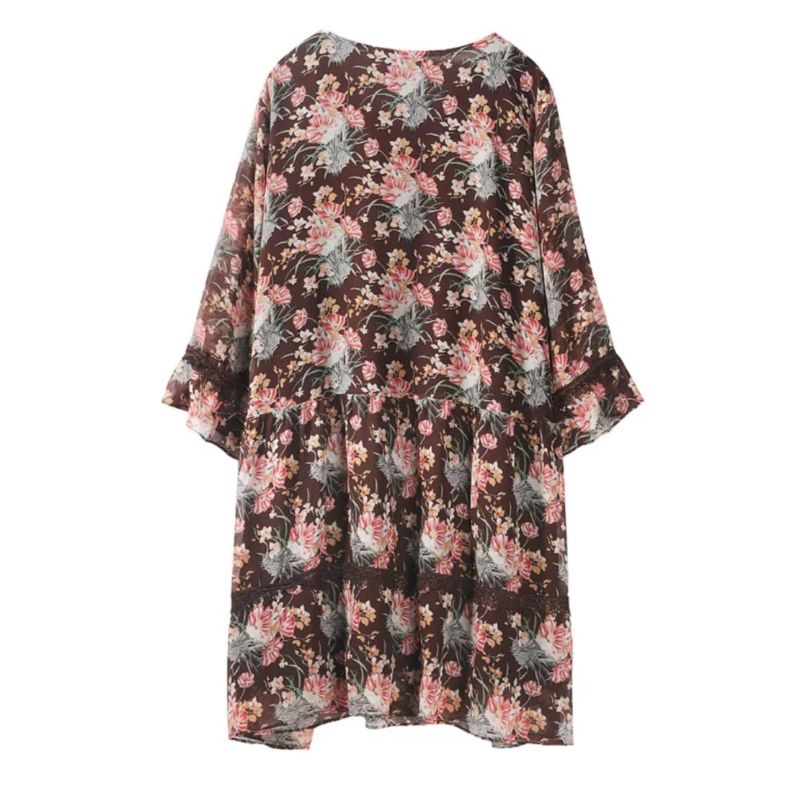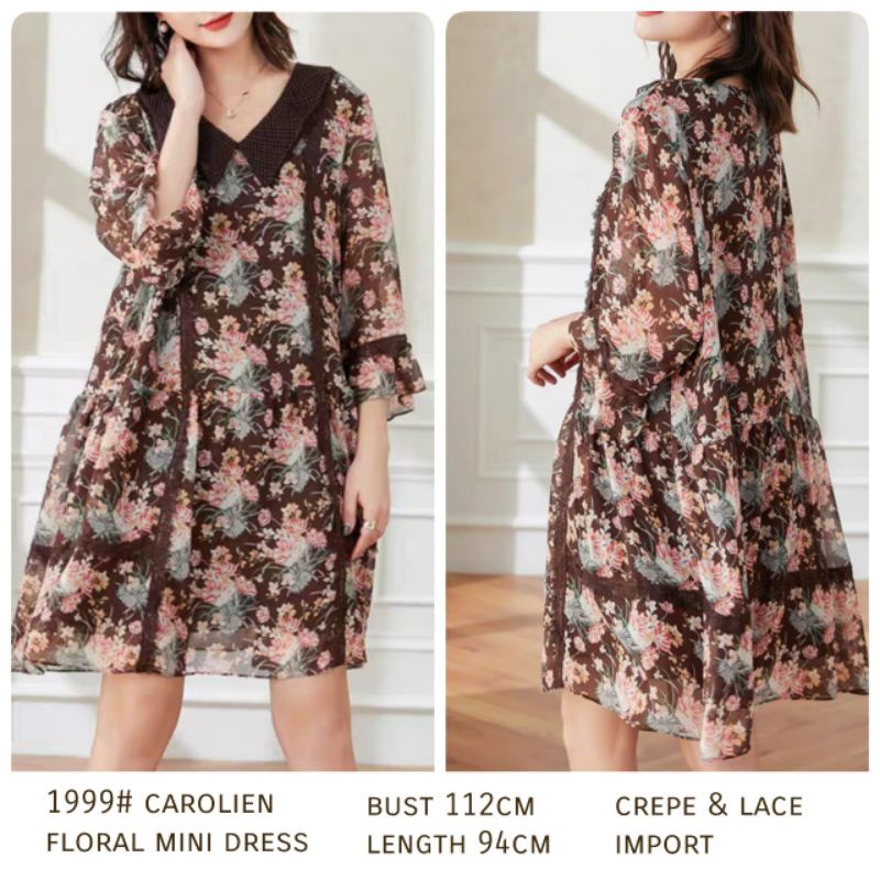 1999 Baju mini dress gaun LOOSE pendek motif bunga flower floral coklat Korean style wanita import baju minidress mini dress gaun pesta motif bunga pendek kondangan santai pantai kerja kantor cewek fashion remaja perempuan Korea terbaru kekinian Citayam