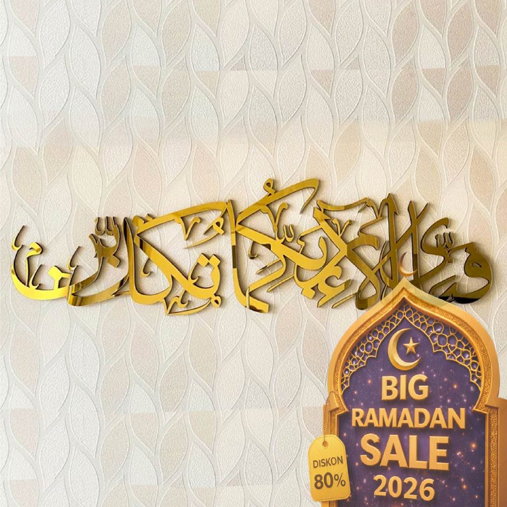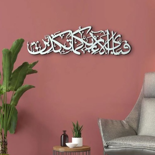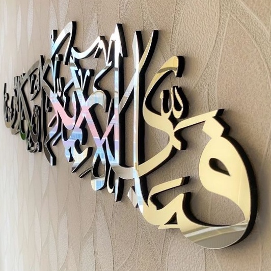 KALIGRAFI ACRYLIC MIRROR MENGKIPAP SURAH AR-RAHMAN - "FABI AYYI ALAI RABBIKUMA TUKAZIBAN" / HIASAN DINDING KALIGRAFI