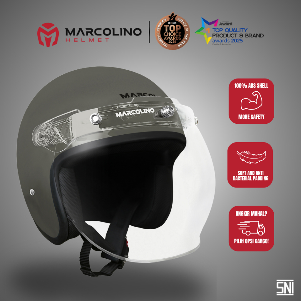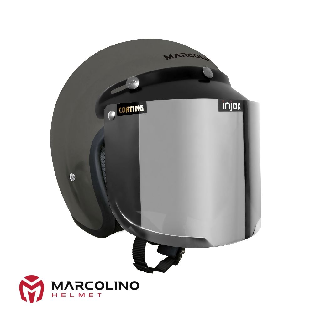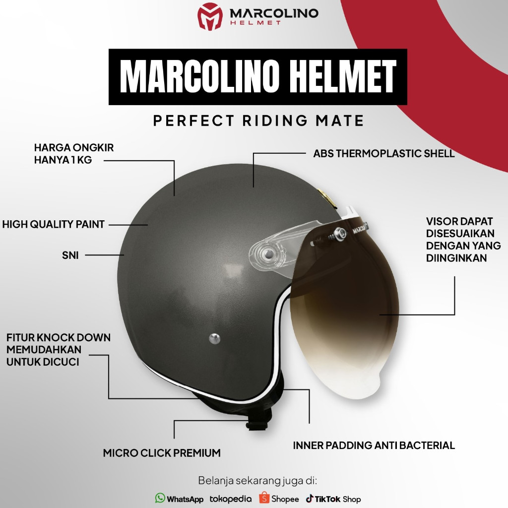 [ Abu Glossy With Visor ] Marcolino Helmet Glossy Edition SNI (Helm Bogo Cowok Cewek pria wanita keren)