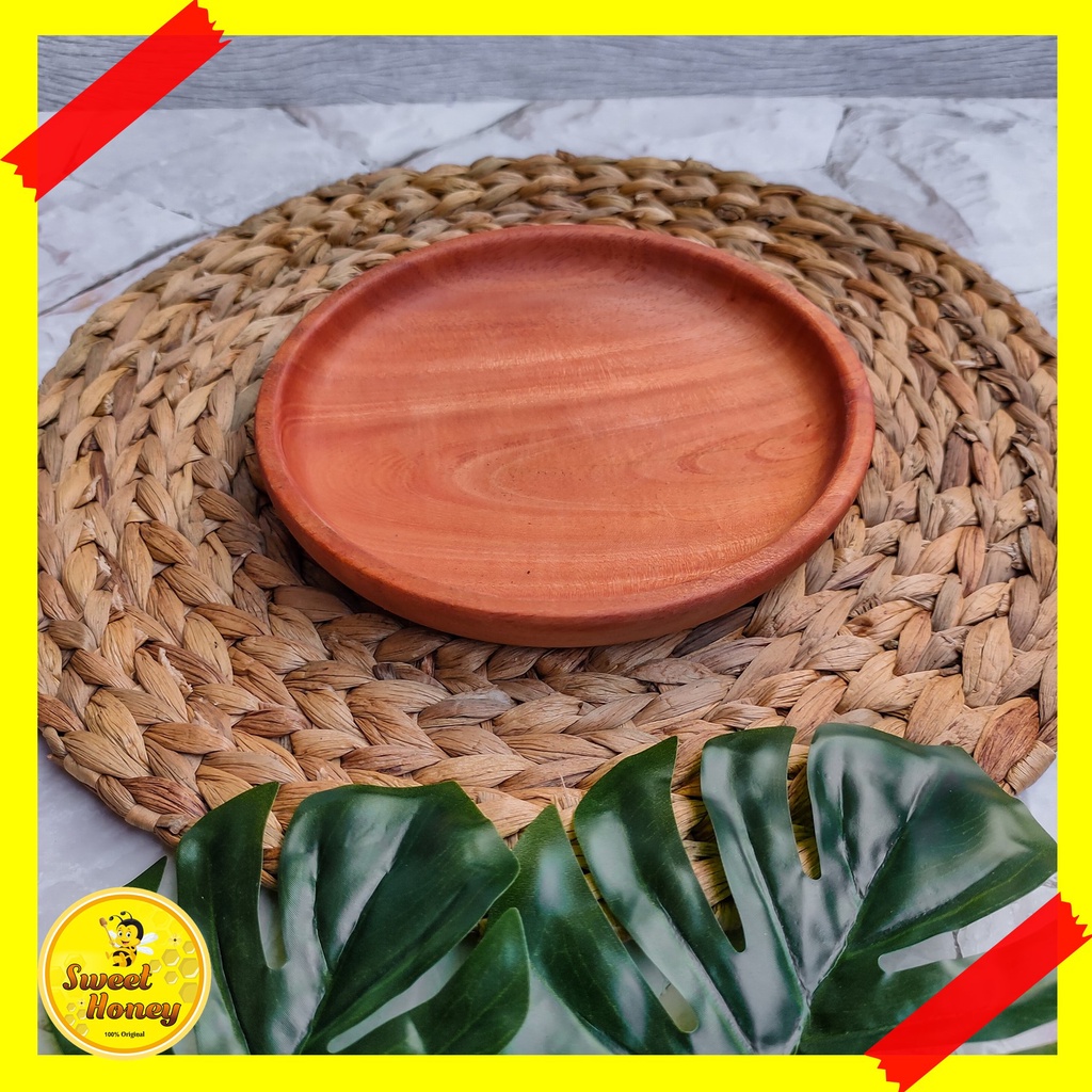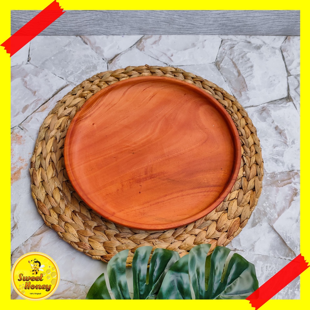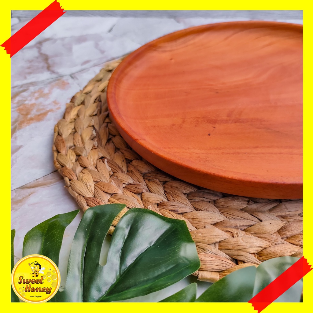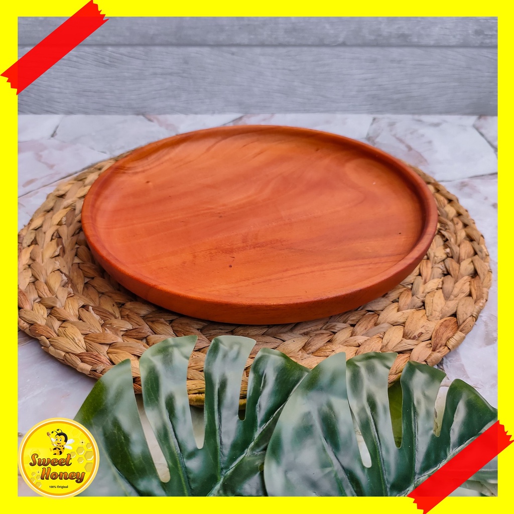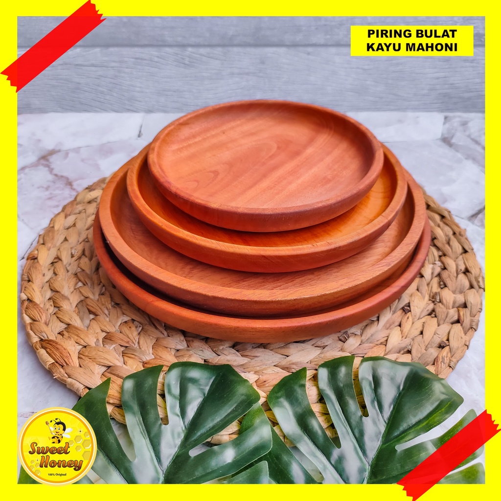 PIRING BULAT KAYU MAHONI / PIRING KAYU / PIRING MAKAN / WOODEN PLATE