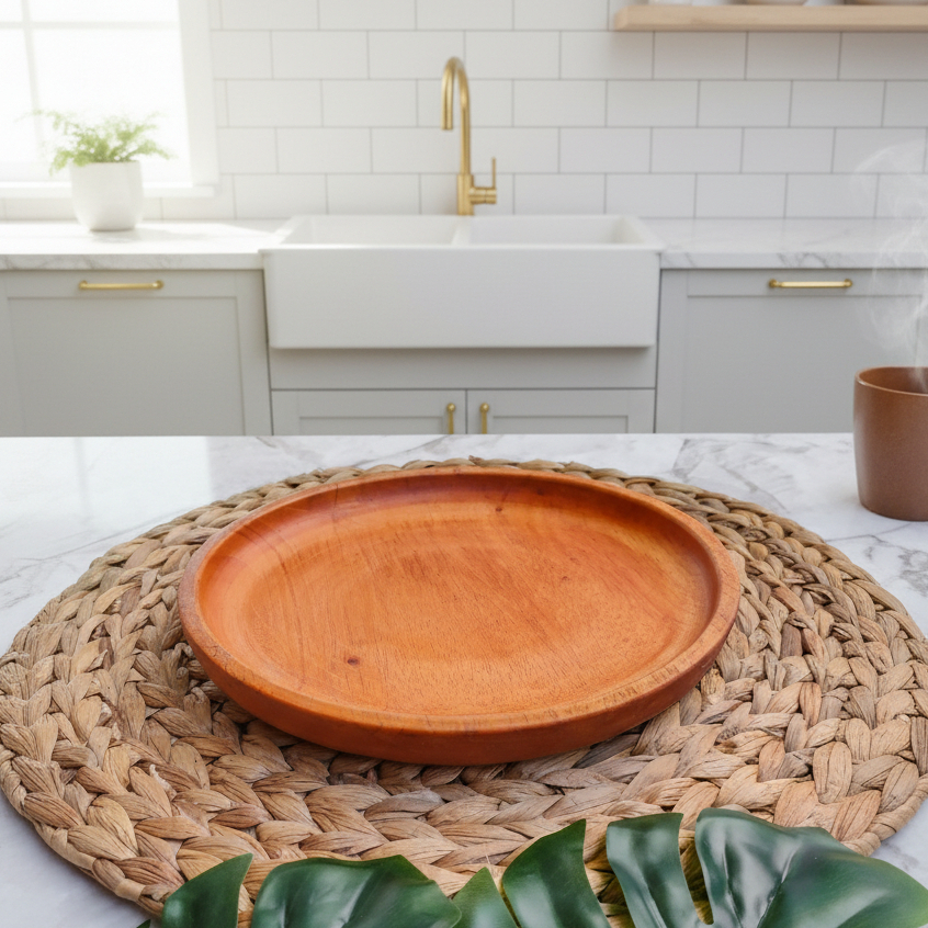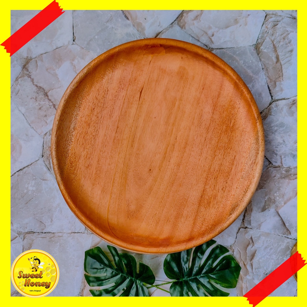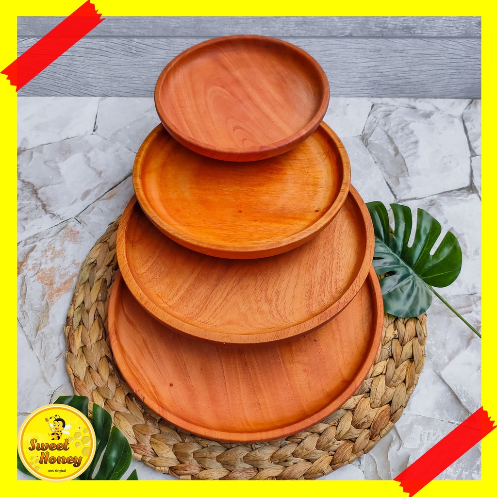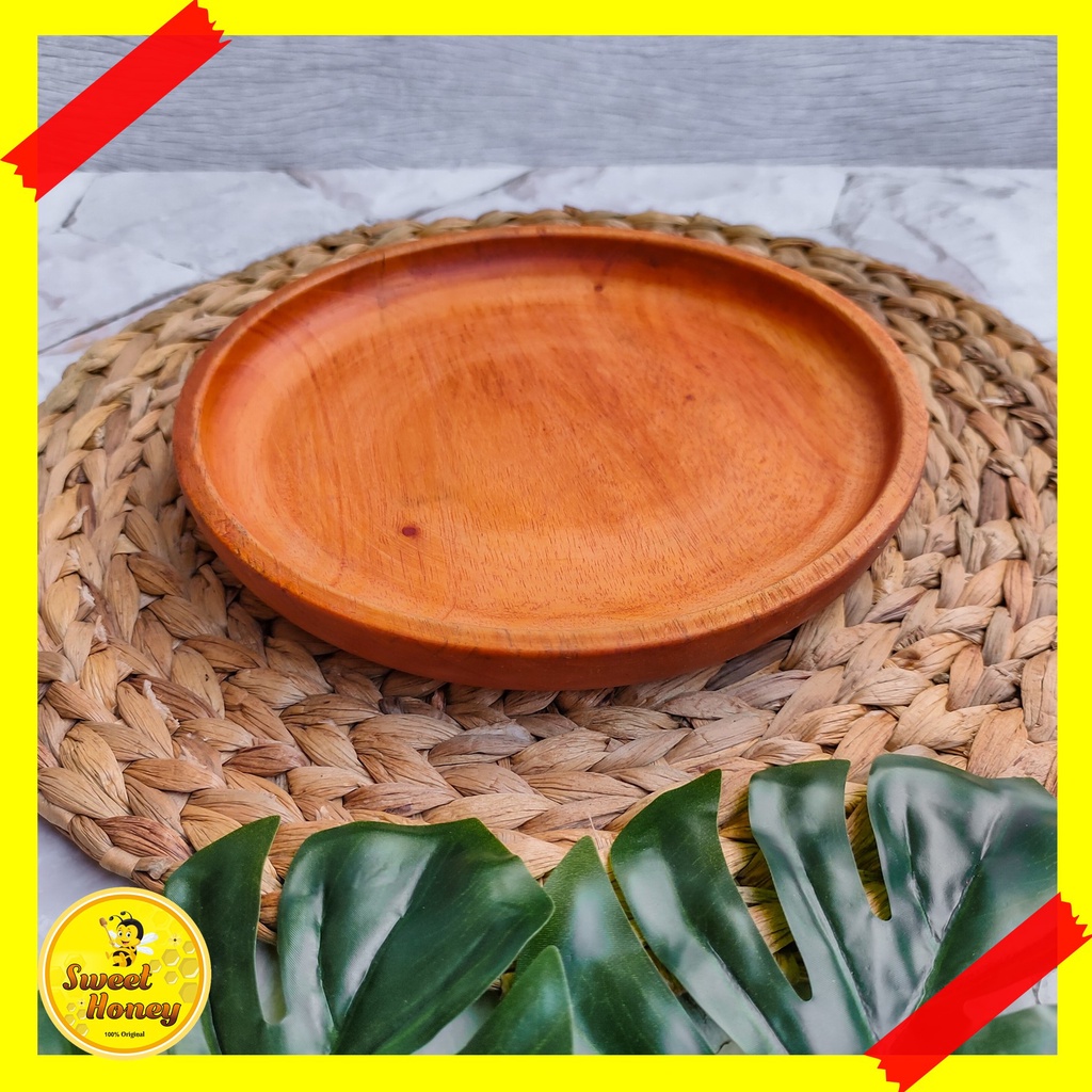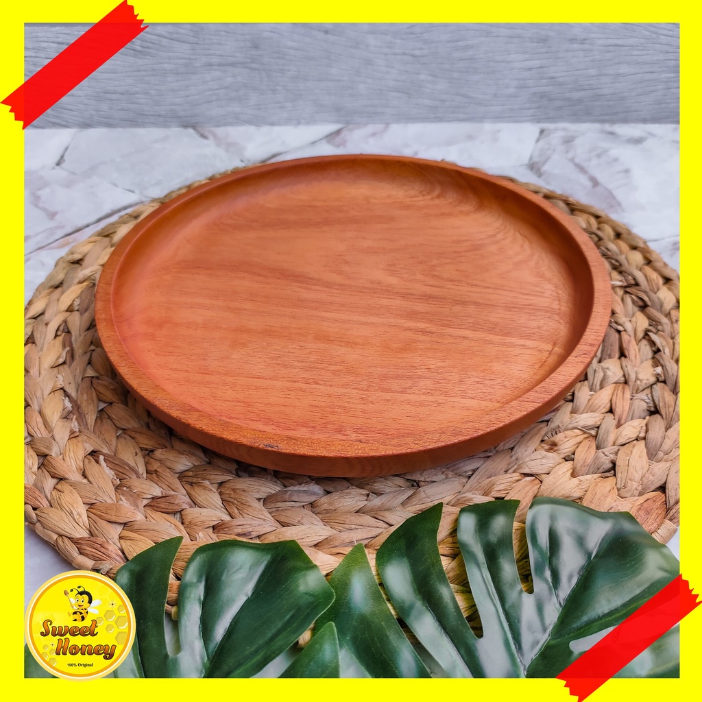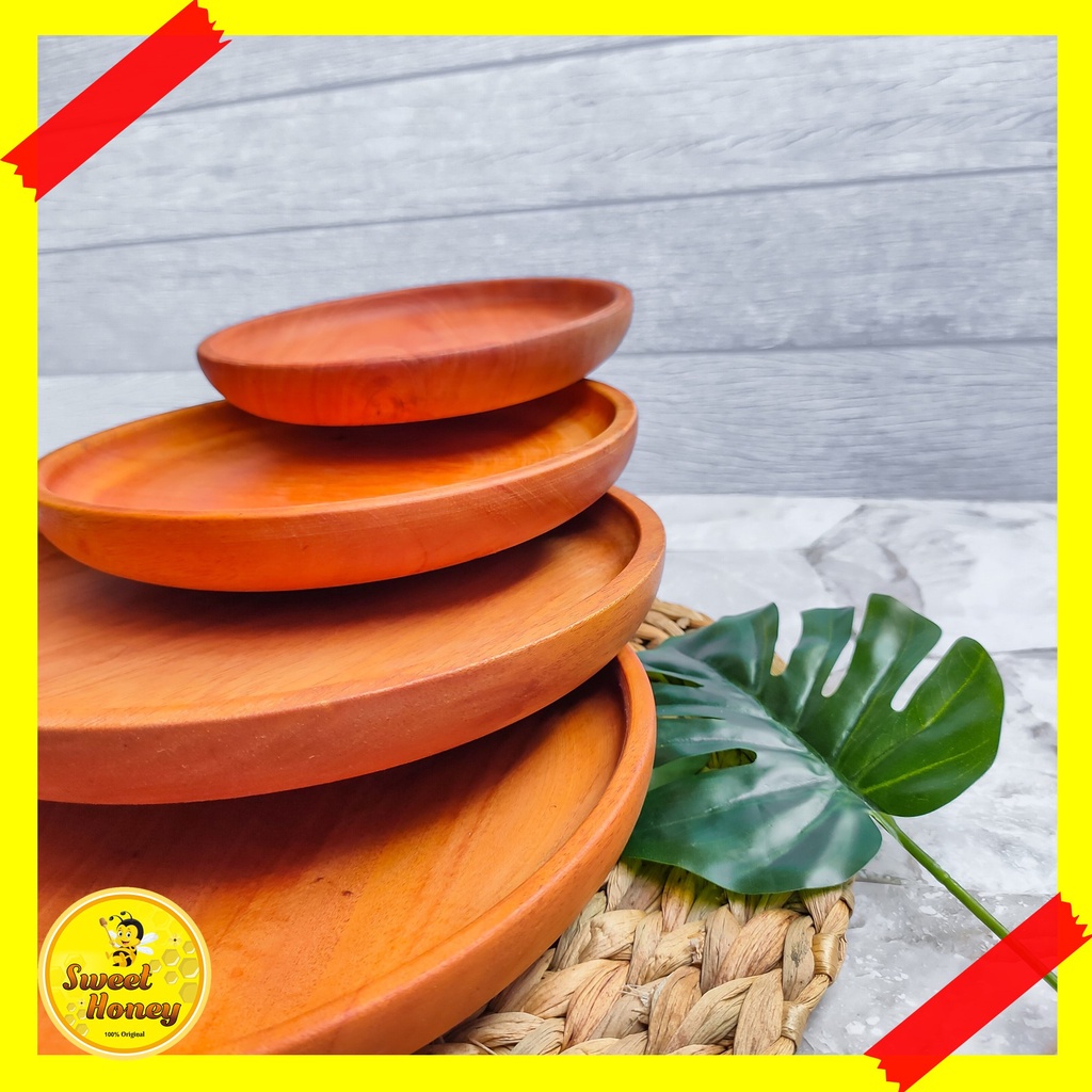 PIRING BULAT KAYU MAHONI / PIRING KAYU / PIRING MAKAN / WOODEN PLATE