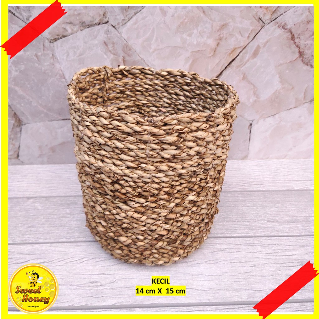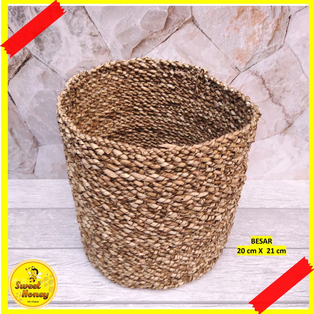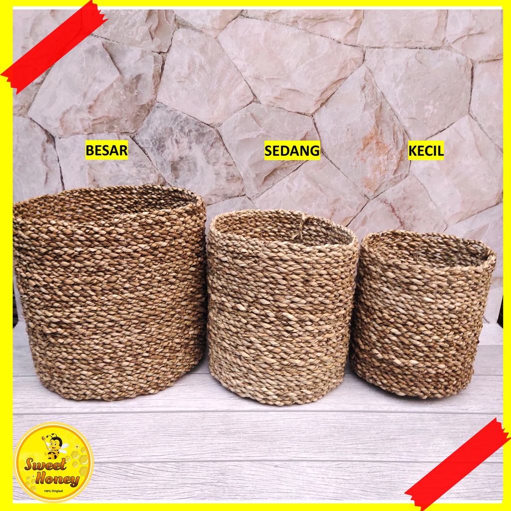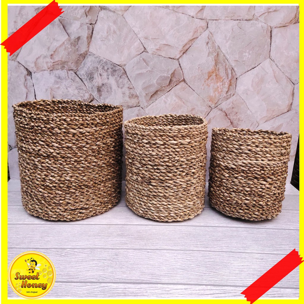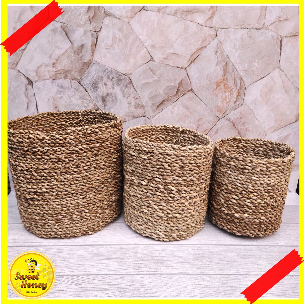 COVER POT MENDONG KERANJANG ANYAMAN SEAGRASS ROTAN GREY TYPE 2 / COVER VAS BUNGA / COVER POT UNTUK RUANGAN